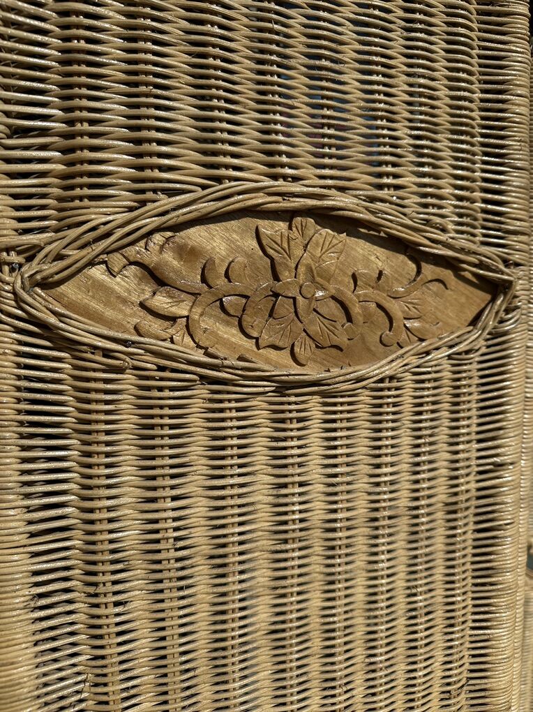 Venmo4 panel wicker walls divider with floral carved accents. Normal wear. Located in Hyde park.