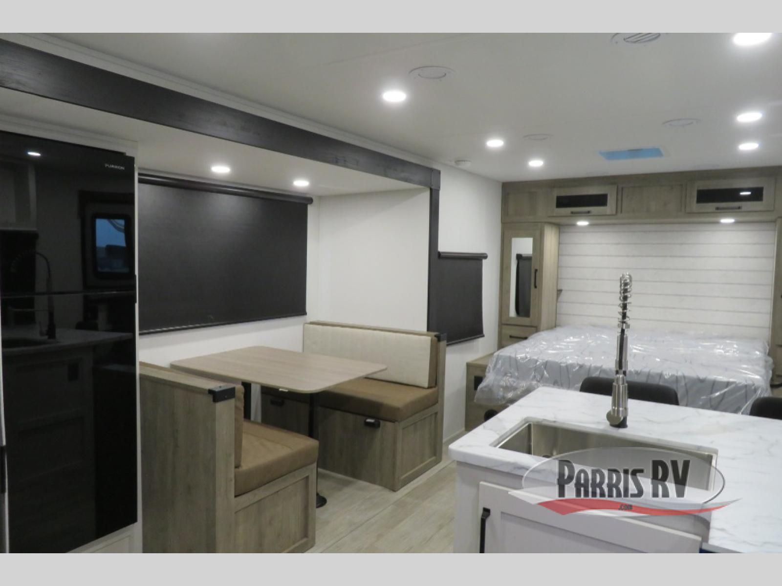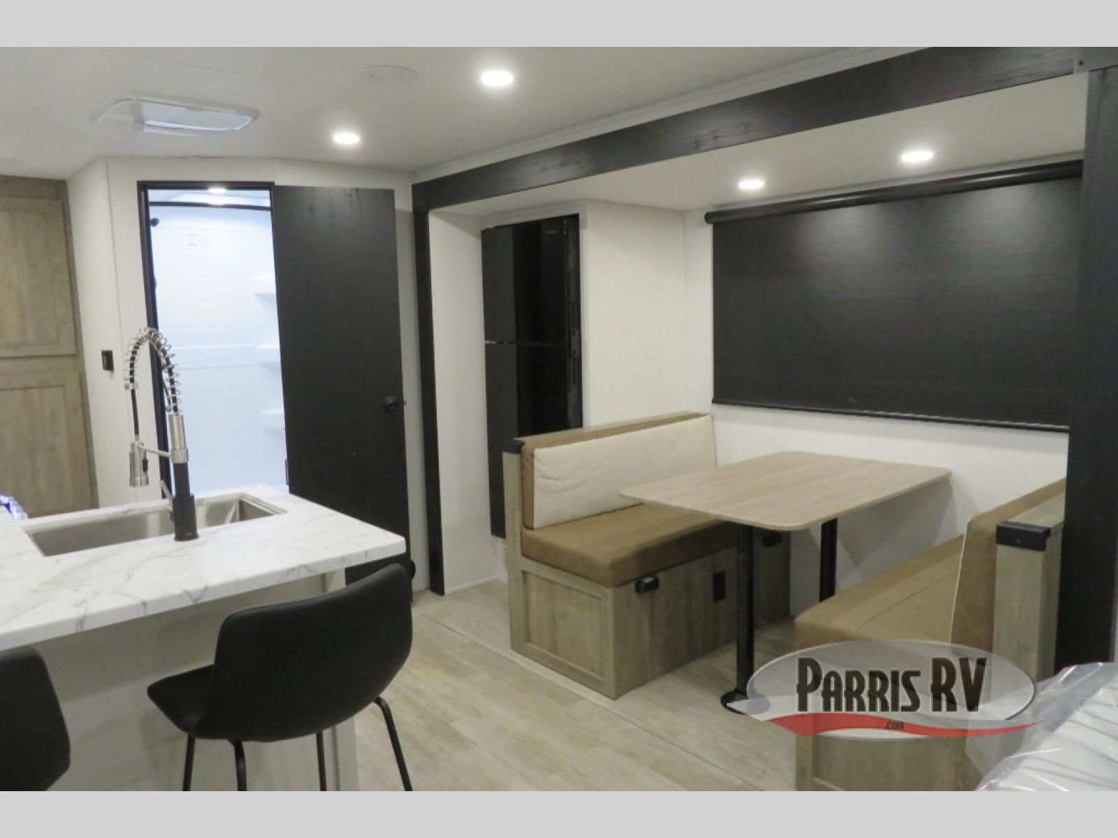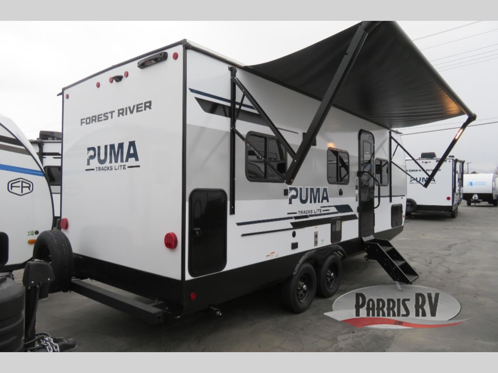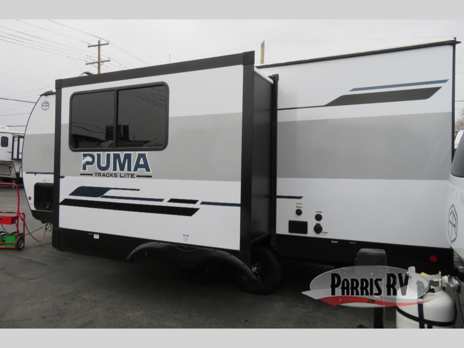 Each Puma Tracks travel trailer by Forest River is constructed with a fully enclosed/heated underbelly for added protection against the elements, plus a fully laminated roof and rear wall for durability. The slam latch baggage doors with magnets will make it easier than ever to pack up your camp gear, and the power awning with LED lights will provide shade during the day and inviting ambiance at night. Head inside to enjoy the roller shades, smoked glass kitchen cabinet doors, stainless-steel sink, and LED lights to keep your space well lit. Some of the available options include a bedroom A/C, a Wi-Fi booster, heated holding tanks, and more!