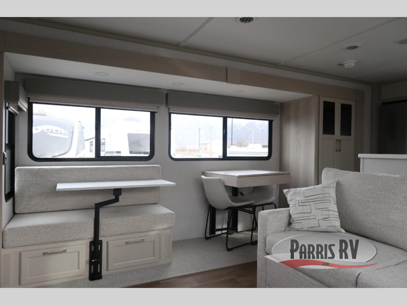 With the Puma Grand Mesa fifth wheel by Forest River, you will love the practical living, ample storage, the optimum towability, and the lavish style found throughout! There is a 7' interior height and a 101" wide body for added space, plus large, tinted windows throughout, worry-free composite floors, and vacuum bonded walls with Azdel for durability. The mandatory River Package includes features such as an upgraded suspension, a screenless operating system with Bluetooth, and three A/C units to keep you comfortable. These fifth wheels also include the mandatory Ranch Package that comes with a stainless-steel appliance package, day/night roller shades, a fiberglass shower surround, plus residential style dinette chairs. There are many more features to love about the Puma Grand Mesa fifth wheels, like the upgraded true solid surface countertops, the mirrored sliding closet doors, and the two-tone painted front cap!