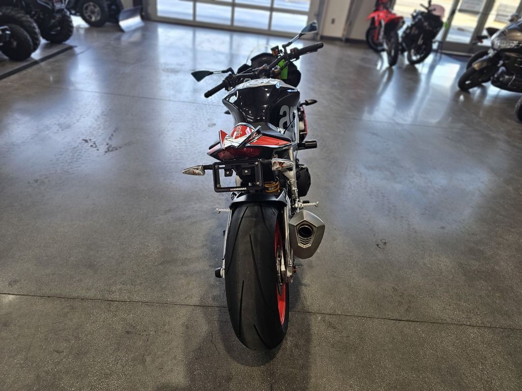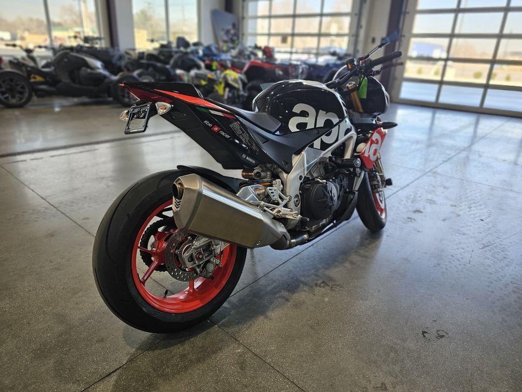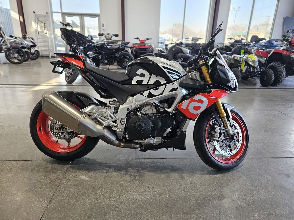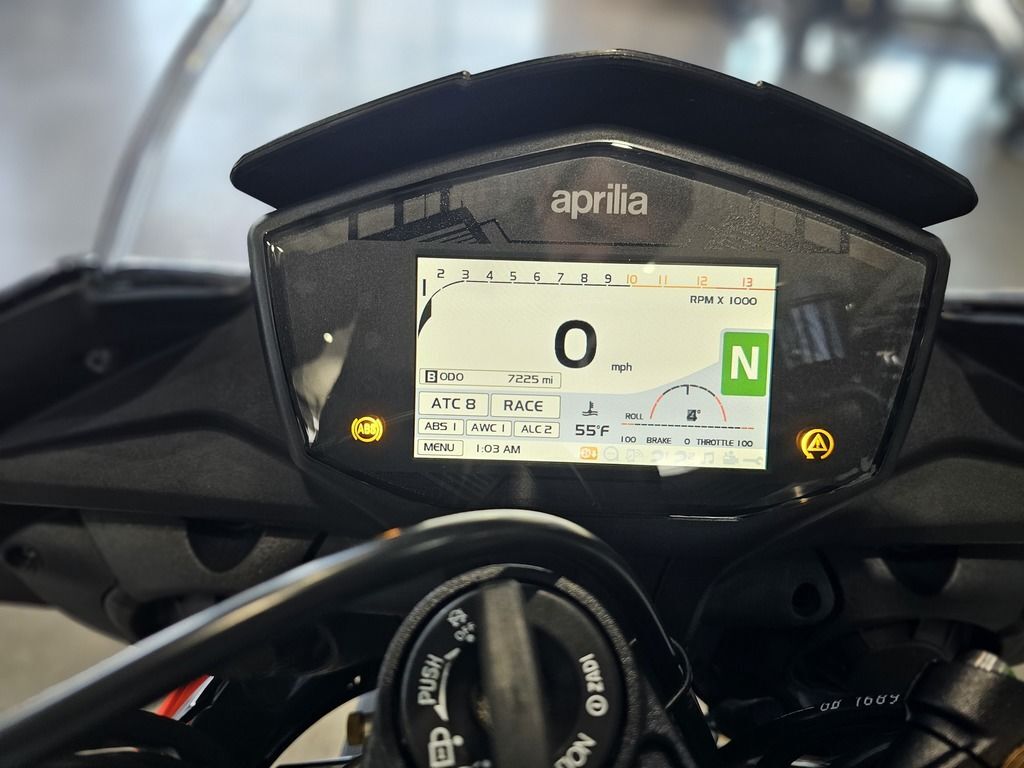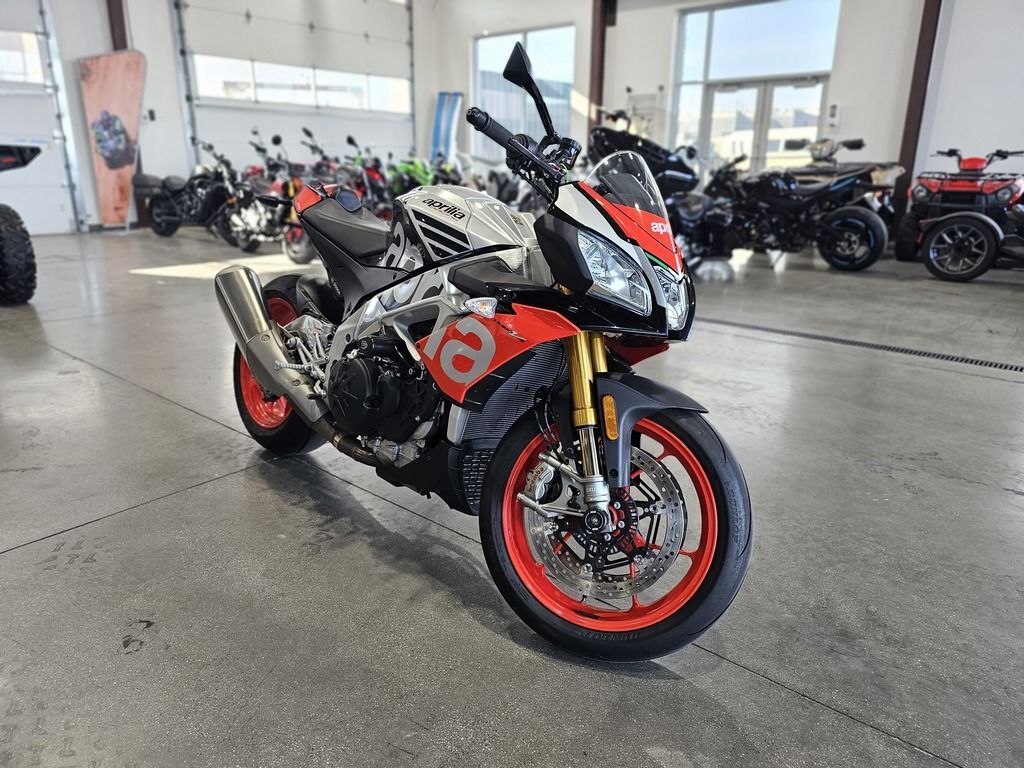 2018 Aprilia® Tuono V4 1100 Factory ABS POWER IN ITS DNA THE LATEST AND MOST SPECTACULAR EVOLUTION OF A SPORT NAKED DYNASTY For the fastest and sportiest naked ever, a direct descendant of the RSV4, four-time world SBK champion, a new evolutionary step has arrived which allows exceptional levels of performance to be achieved. The new, sophisticated electronic management includes an advanced dynamic controls package with APRC, Cornering ABS, Pit Limiter and Cruise Control. The inimitable 175 hp V4 earns Euro 4 approval, without sacrificing any of its superb performance. Improved suspension and brakes. Features may include: Euro 4 engine, the same exciting performance The Tuono V4 1100 is the only naked powered by a 65° V4 engine with unique characteristics. The narrow V architecture has made it possible to make an engine that is extremely compact lengthways which helps to centralise weights and to have a compact chassis. The changes made in this evolution of the Italian V4 not only resulted in earning Euro 4 approval, but also in increasing overall reliability and performance, without sacrificing any of the great character and marvellous sound that bikers love so much. The powerplant earns a new exhaust system with a silencer that has a double oxygen sensor and a built in valve. The engine ECU is new, with superior calculating capacity able to manage the rise in maximum revs, now 500 rpm higher. In order to guarantee maximum reliability, decreasing friction at the same time, the piston pins have DLC surface treatment, whereas the connecting rod heads boast a surface honing treatment. Suspension and brakes directly from the new RSV4 If, on one hand, the new Tuono V4 range fully confirms all the proverbial qualities of handling and stability stemming from a frame that is closely derived from that of the Aprilia RSV4, seven-time World Superbike champion, on the other, it introduces important news in the brakes and suspension department. The front Brembo braking system comes directly from the one on the new RSV4 and relies on a pair of new steel discs that have been increased to 330 mm, gripped by the new monobloc M50 callipers and activated by a radial master cylinder on the handlebar. Aprilia Tuono V4 1100 Factory also has a prestigious Öhlins NIX, with fully adjustable hydraulics and spring preload. This unit saves about 400 grams compared with the previous one and is combined with the same brand rear shock absorber and steering damper (also adjustable). Completely revamped electronics The greatest innovations have to do with the Aprilia Tuono V4's on board electronics, that has always been considered as the “best in class”, where the APRC system stands out. Aprilia Performance Ride Control is the patented control suite derived directly from the winning technology in world Superbike, the most complete and refined of those available on the market. The fourth generation of APRC, standard on the Tuono V4 1100,fits in perfectly with the fine electronic management of the new full Ride-by-Wire throttle, that has allowed all superfluous throttle body electronic management components to be eliminated, thereby saving 590 grams. The repositioning of the inertial platform that allows APRC operation has improved accurate detection of the dynamic conditions of the bike, resulting in more efficient electronic control strategies. Versions and colours The new Aprilia Tuono V4 1100 range includes two models distinguished by different technical equipment and different colour schemes: Tuono V4 1100 RR is available in two attractive colour schemes, grigio Portimao and nero Assen, whereas the Superpole graphic of the Tuono V4 1100 Factory has that decidedly non-conformist spirit so typical of the Aprilia stylistic tradition that demands bright and very distinctive colours.
