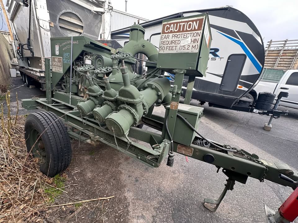 PayPalHeavy-duty military surplus water pump trailer built by Barnes Pump (Peabody Barnes Inc.). This is a real industrial system — not a homeowner pump.