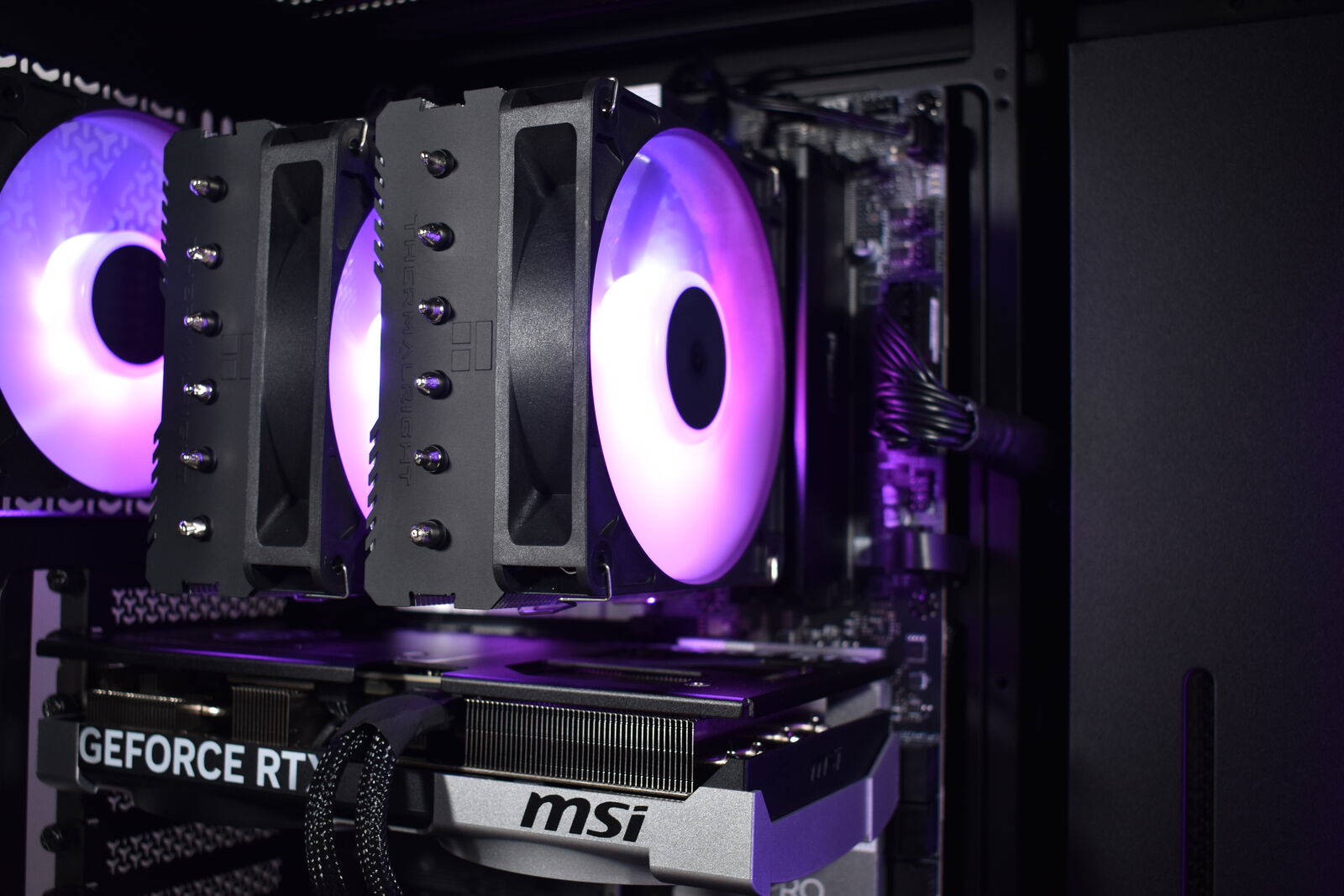 Cooled by a Thermalright Peerless Assassin 120 SE air cooler with two Corsair RS120 ARGB Fans installed!