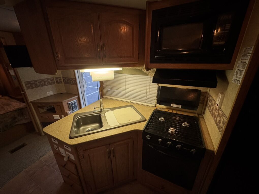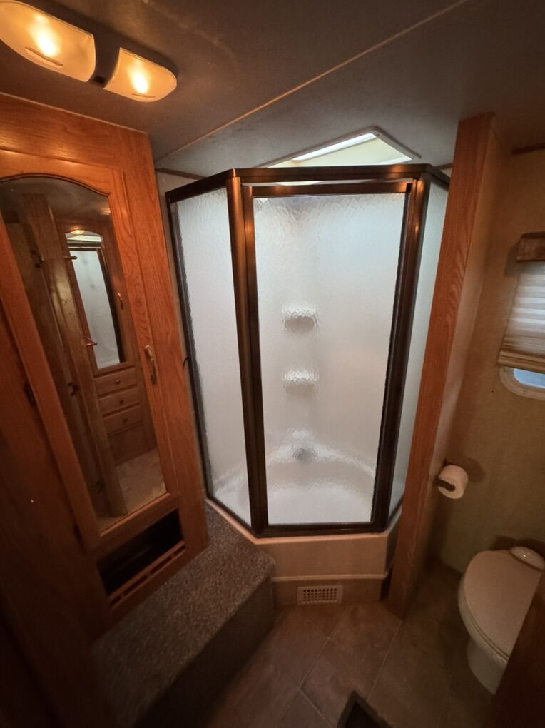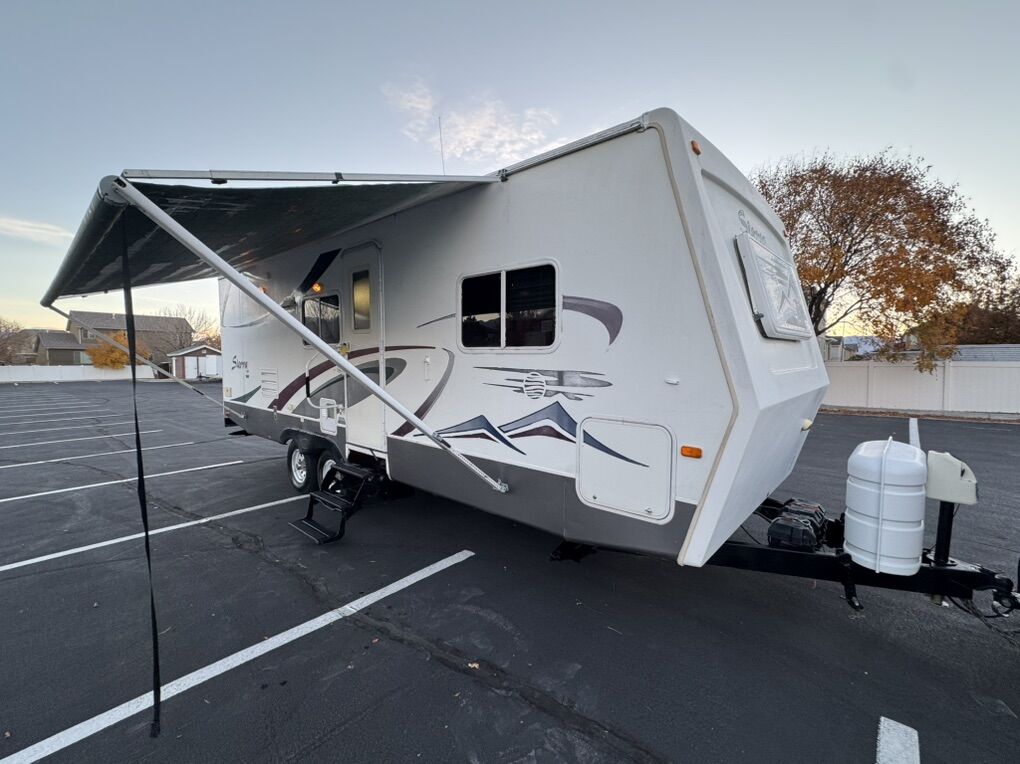 Rear access ladder All plumbing 100% Everything works flawlessly . Tons of storage Roof was just professional fully recoated/resealed with a lifetime warranty product in November. No roof worries and upkeep on this model. This is a one owner well maintained trailer in great condition for its age. Everything has been gone through and inspected all systems work great The bigger slide out is so roomy and operates so smoothly and the weather seals on it are in great condition All the extras included upgraded dual 7.5g propane Bullydog Power hitch 4 point equilizer hitch setup. Solar setup for off grid capability 567b. Awsome hard to find model in excellent condition all around, no issues. Must see. $9495