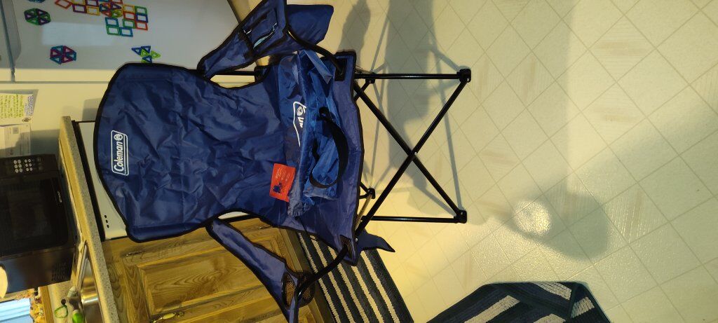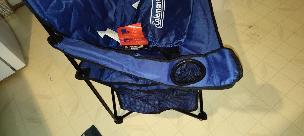 CashAppBrand new Coleman portable chair. Great for camping and fishing as well as using it in your backyard or patio. Very sturdy and comfortable and will last for several years because it's made using a good strong canvas material that will withstand extreme weather conditions. There's also a small (three beer) cooler attached to the left armrest. Whomever purchases the chair will be very pleased as it's easy to store and it's easy to carry having a carrying bag w/ shoulder strap. I do have a money back guarantee if after purchase it's realized that it's not practical for you.