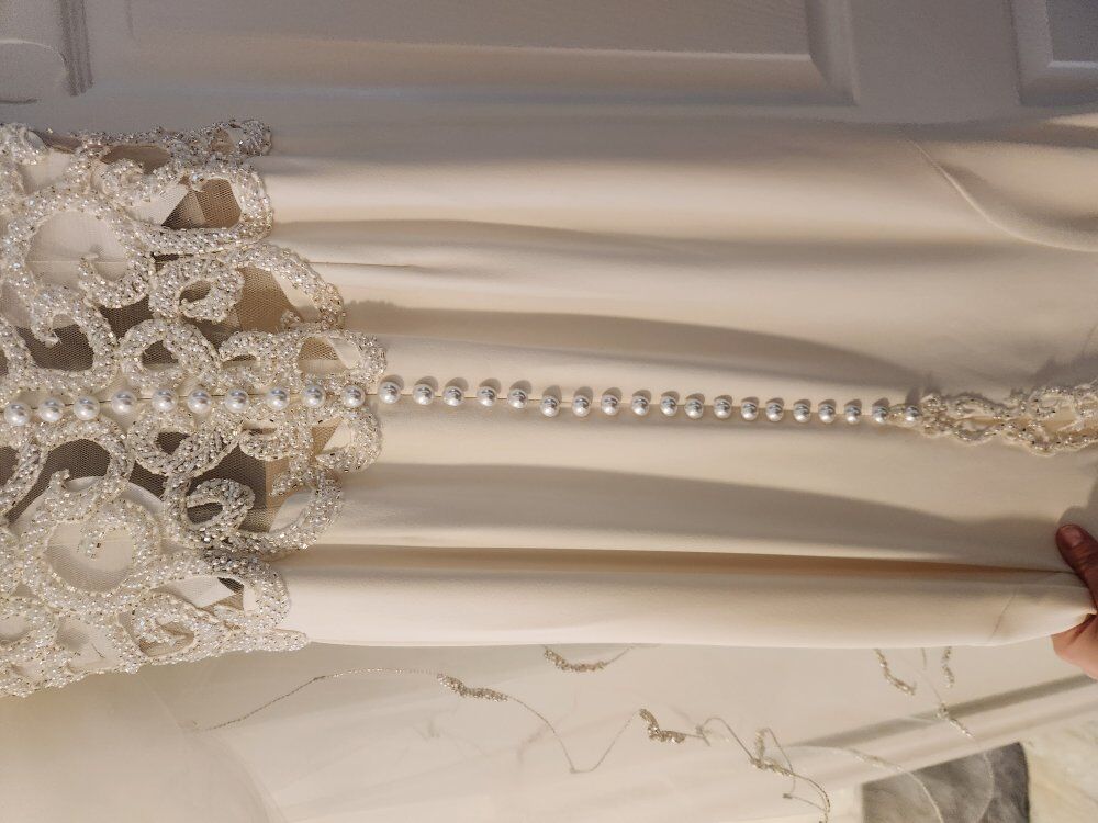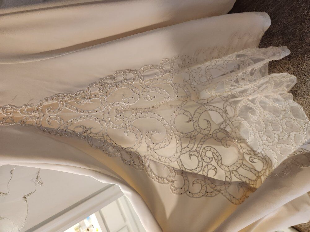 Venmoa beautiful size 00 wedding dress. got married in 2020 so covid. it wasn't worn. husband and I are still together for superstitious people.