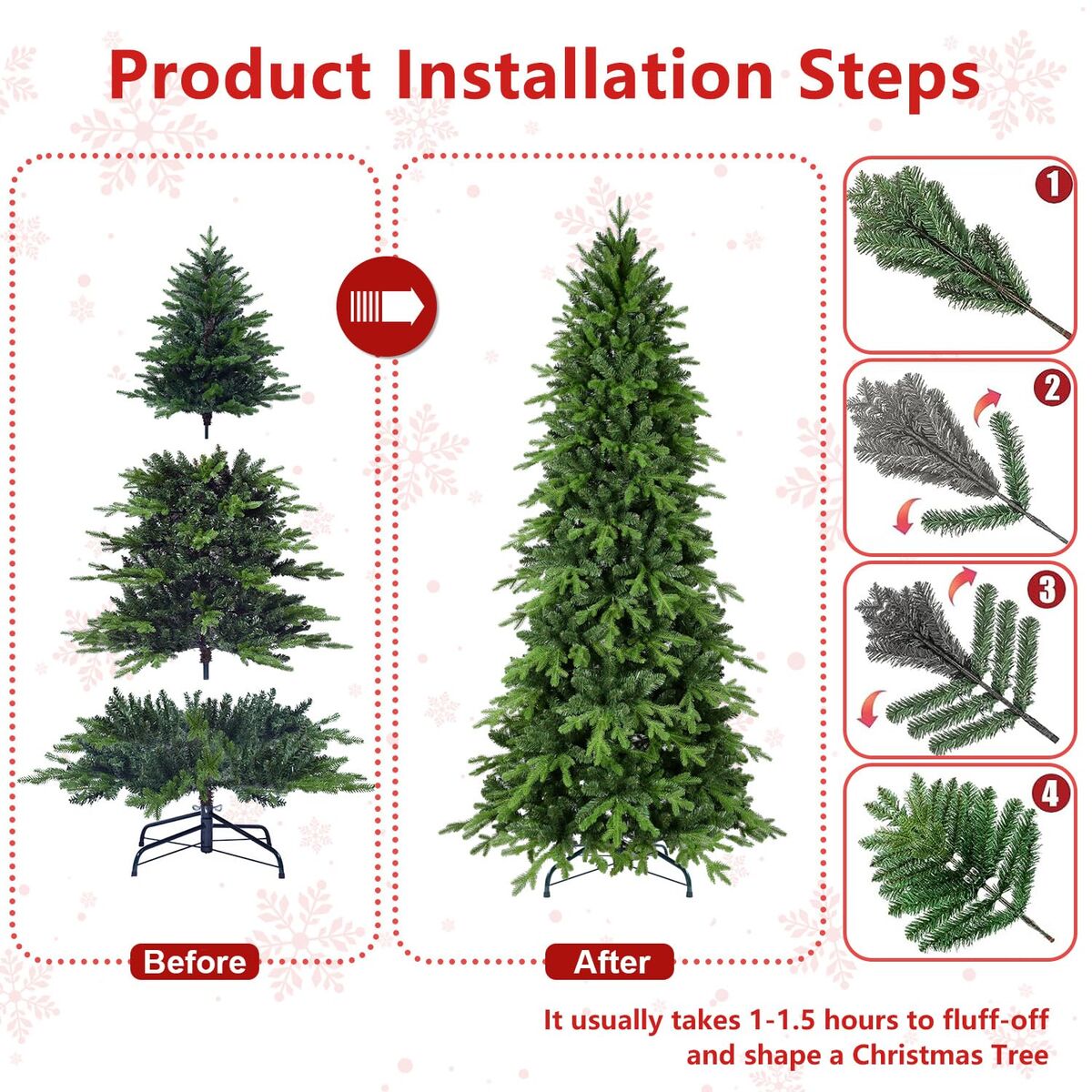 Premium PE&PVC material: The outer branches of our christmas tree are made of premium PE brand new material, which has the characteristics of realistic appearance, not easy to break and change color, non-toxic, and flame retardant. The inner branches are made of brand new PVC material, which is used to increase the fullness of the overall tree shape. The unlit christmas tree has passed REACH and Ca Prop 65 certifications, providing added protection for your health and safety. Straight Christmas Tree Design: This straight Christmas tree has a narrower bottom branch diameter than the classic Christmas tree, and its overall image is straight, similar to pillars, enhancing its realism and beauty. This tree is 4 feet tall and has over 919 carefully crafted branches. Its lush and plump appearance adds richness and color to any vacation environment. Durable and sturdy design: Our christmas tree is equipped with a sturdy X-shaped metal base and thicker metal trunk, ensuring its stability and durability in daily use. Whether placed indoors or outdoors, we can confidently keep the Xmas tree upright and safe. It also ensures that it can be enjoyed in many future holidays. Easy installation and storage: This artifical christmas tree uses metal hinges to connect the branches, and the internal support of the branches is a mixture of memory steel wire and iron wire, gently shaping the tree tip to quickly unfold the branches and leaves, making it easier to hang christmas tree decorations for a full and natural appearance. The foldable design and detachable components facilitate compact storage. Inspiration: This 4ft artifical christmas tree is an ideal centerpiece for your holiday decor. Its full, tree-like shape and lifelike foliage provide a splendid backdrop for ornaments and wreaths, elevating their allure. Whether you favor traditional holiday hues or contemporary tones, this tree ensures each decoration stands out with maximum impact. 211236 2-9-26 00.2 rt89