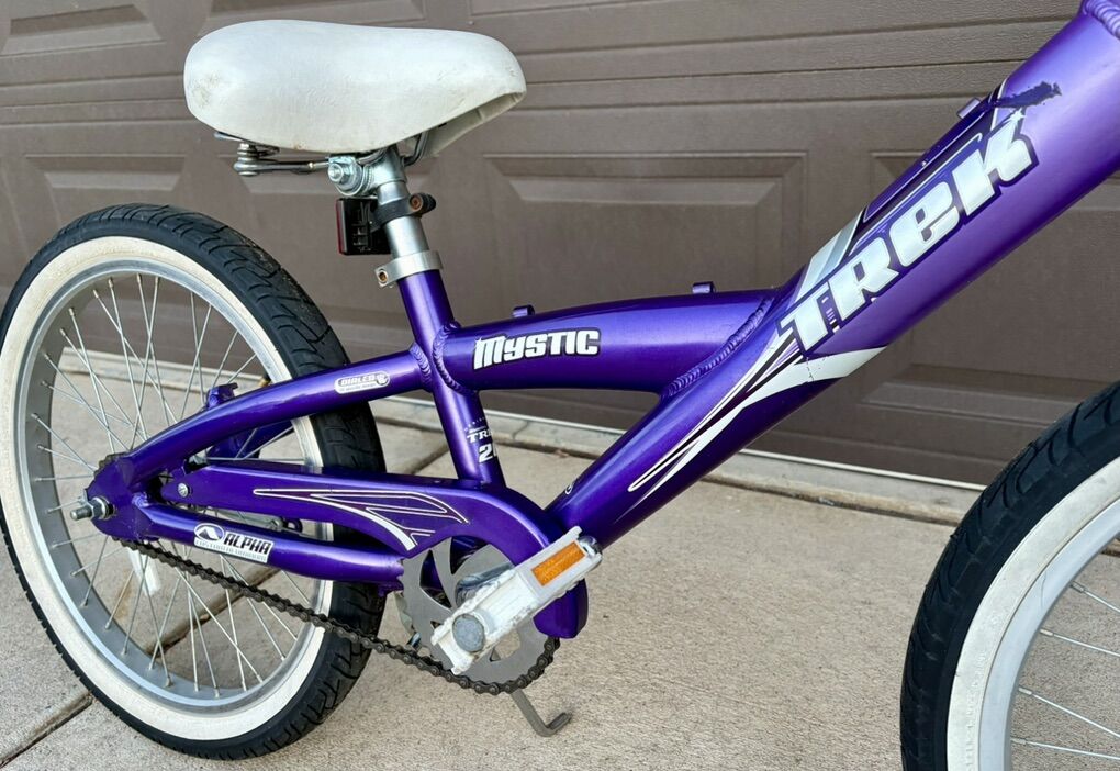20” TREK bike thats ready to ride. The bike is in great condition. Has excellent street tires and I’ve added $20 worth of self sealing slime tubes to the bike so that you don’t have to worry about getting flat tires. Has a lightweight aluminium frame for easy handling and mobility. Has a low crossbar that allows for easy getting on and off the bike. Bike is kid used so has the normal scuffs that you might expect. Located in Orem. Cash only please. Thanks