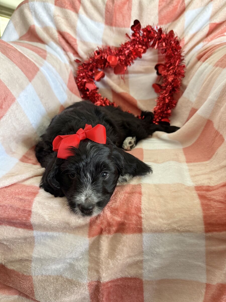 These sweet girls are still available! We sold their siblings for $3,000, but these girls are still looking for a home. They are estimated to be 18-25 pounds. Mom is a 25 pound mini goldendoodle, dad and an 18 pound mini Australian shepherd. They are almost 7 weeks old and ready to go to their forever homes the week of the 22nd! They will go home with their first round of vaccines, vet check, deworming done at 3.5,7 weeks, a small bag of food, a snuggle puppy, and a blanket and toy.