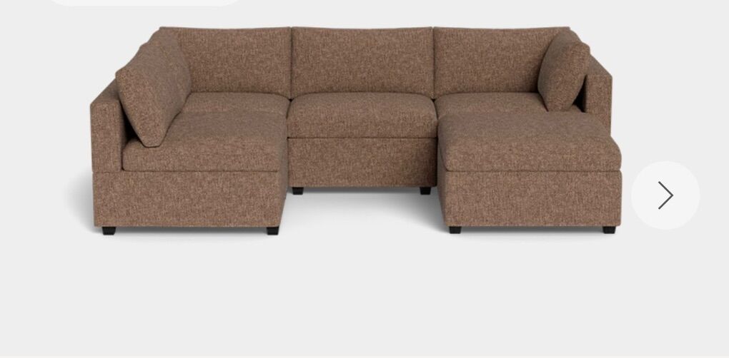 Really awesome and comfortable couch. It is BRAND NEW. Ordered it and it doesn’t fit our room well so it went right back into the boxes. Currently $5300 on their website. Beautiful mocha material with removable covers for easy washing. My loss your gain at this price for such a nice couch. Thanks for looking