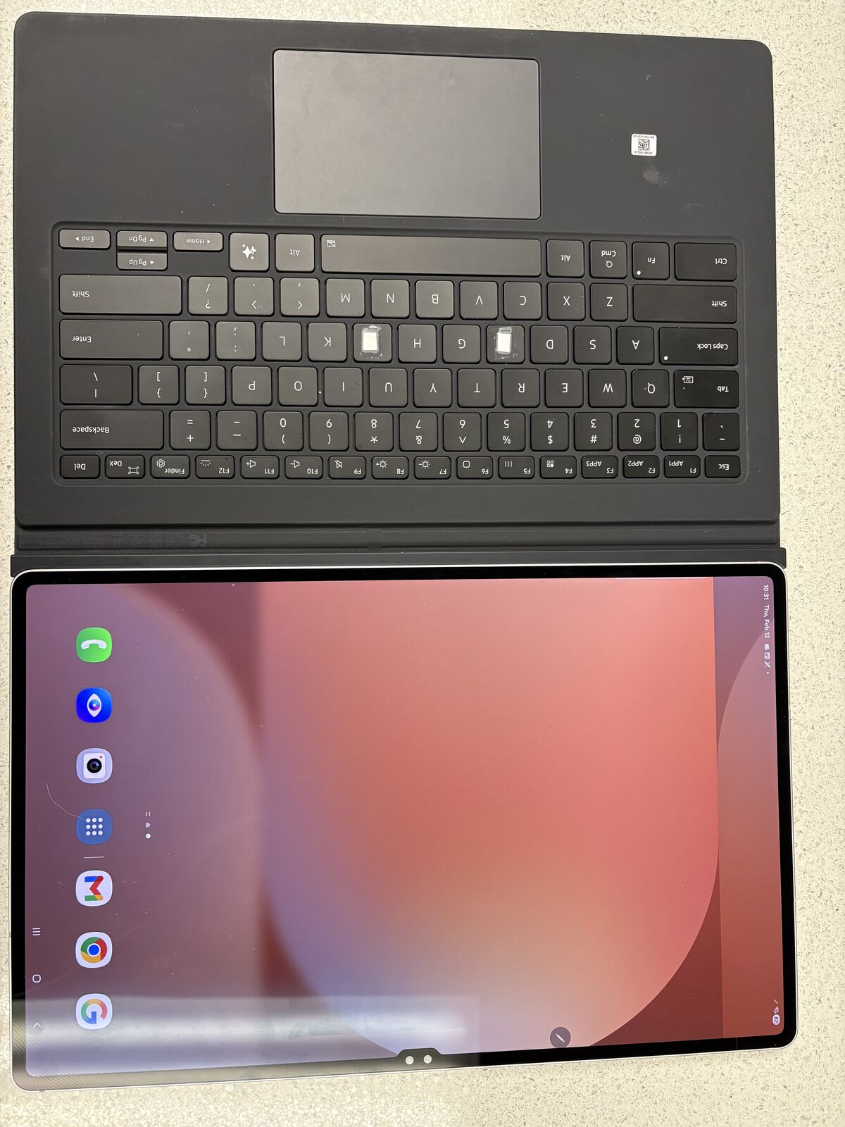 Galaxy tablet in good condition. Works well. Comes with keyboard and trackpad.