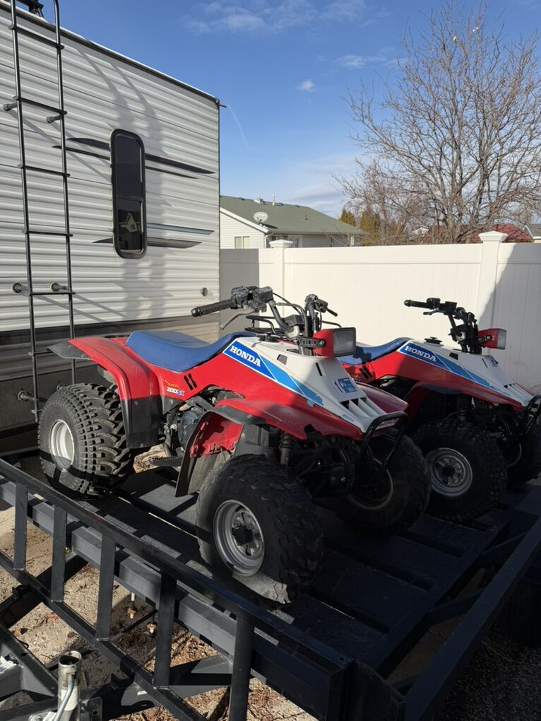 Looking to sell all 3 as a set, 2 four wheeler’s and the trailer. I do have the titles for the four wheelers but do not have one for the trailer, can do a bill of sale for it. Both four wheeler’s start right up with no issues. The one will need two front tires, it was ridden the most out of the the 2. If you have any question please reach out. Thanks!