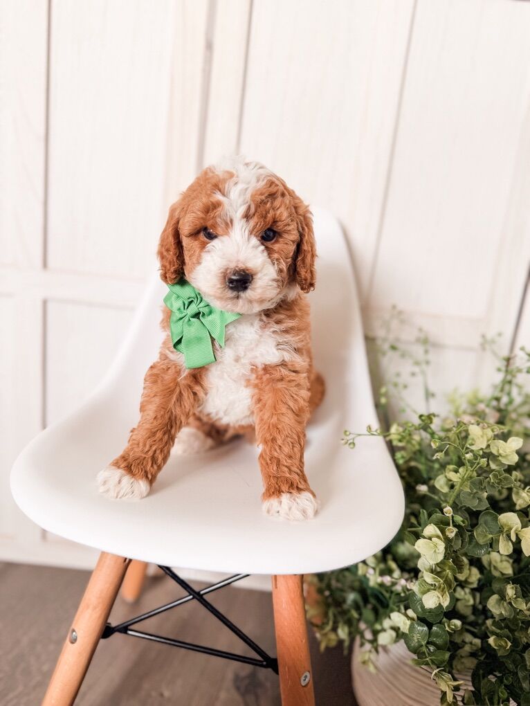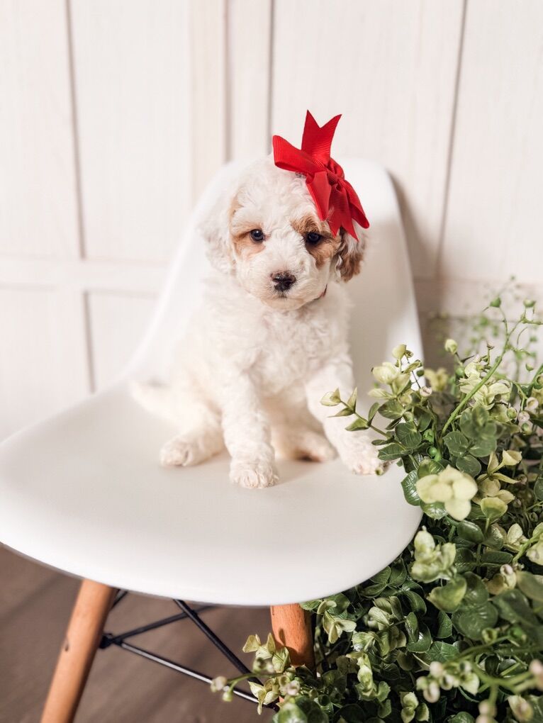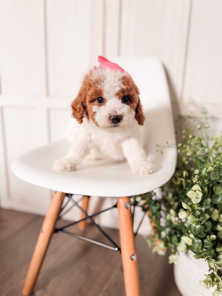 ZelleReady Feb 28! These darling puppies will be 8-16 lbs full grown. 5 girls, 2 boys available. They come from health tested parents, a health guarantee, dewclaws removed, vet check, first shots, raised in our home and well socialized. $300 deposit to hold your puppy You can check out the details here! https://www.timbertaylordoodles.com/goldendoodle_puppies.php