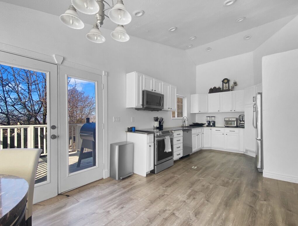 ZelleThe home has 5 bedrooms. 2 large rooms up stairs and 3 downstairs and can be used as a split level since it has a walk out entry with a second full kitchen and separate washing machine downstairs.