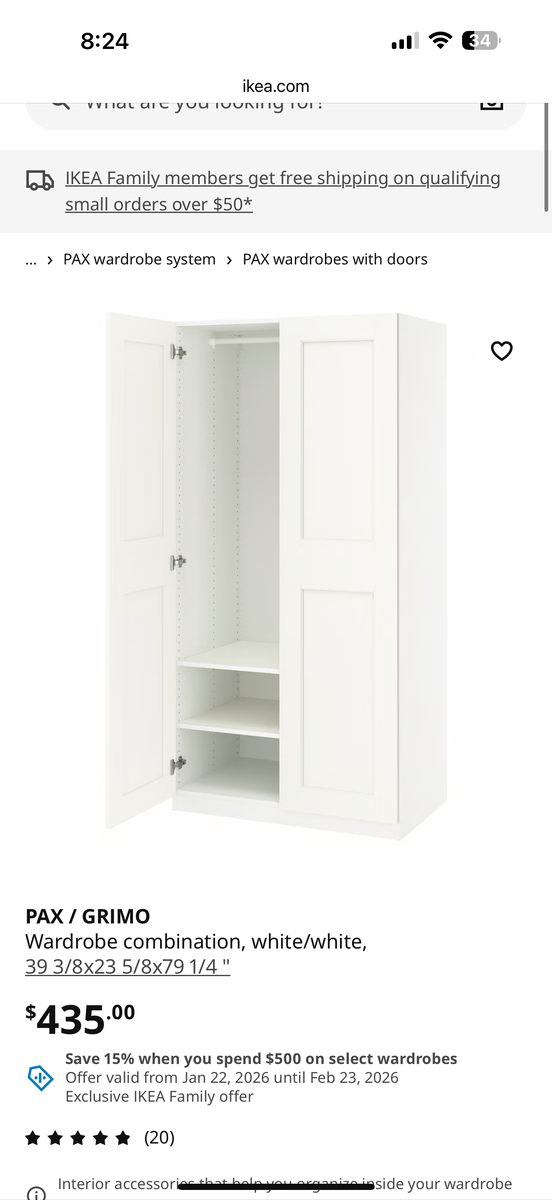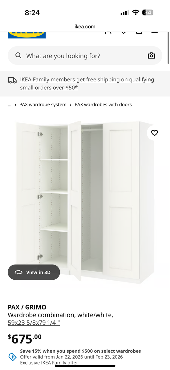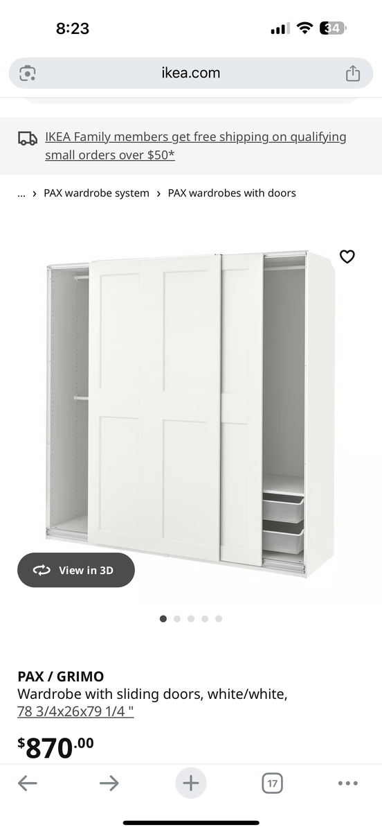 ApplePayGrimo wardrobe Closet Cabinets. We have 4 closet pieces that is valued at $3,000. We are asking a fraction of the price to move them fast. The are still assembled and can be transported easily. I can deliver them for a small delivery fee.