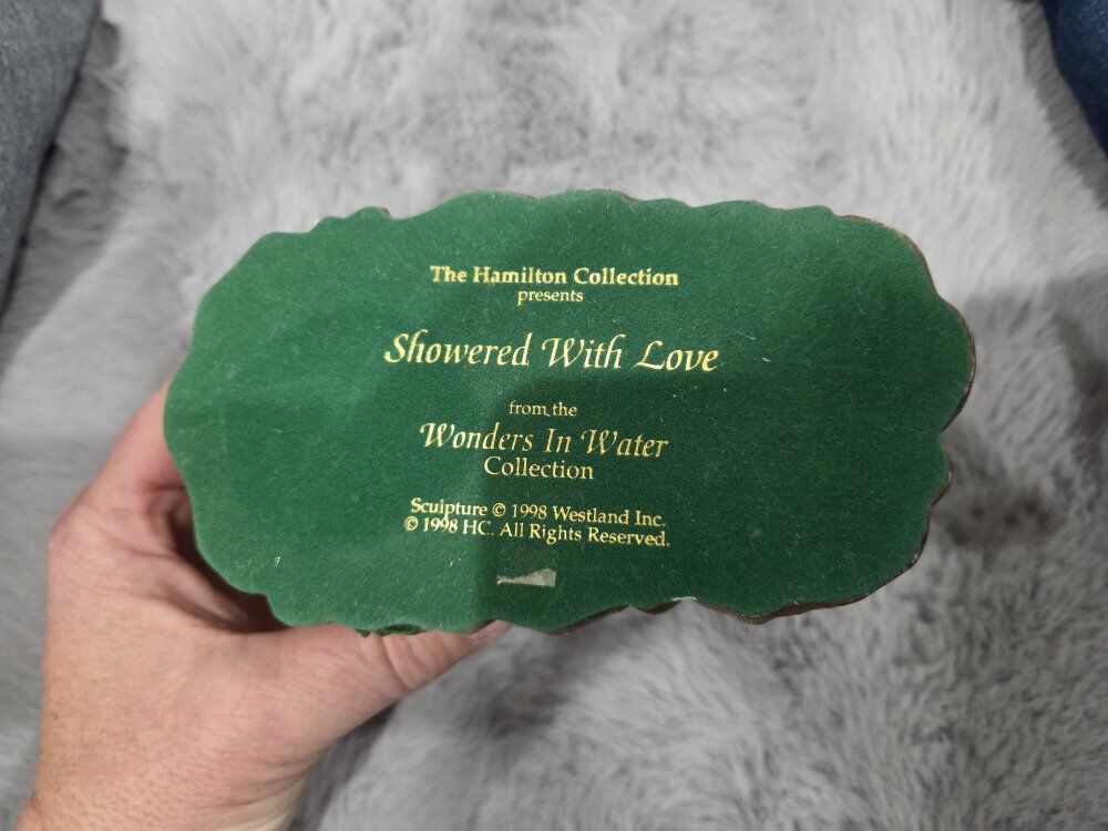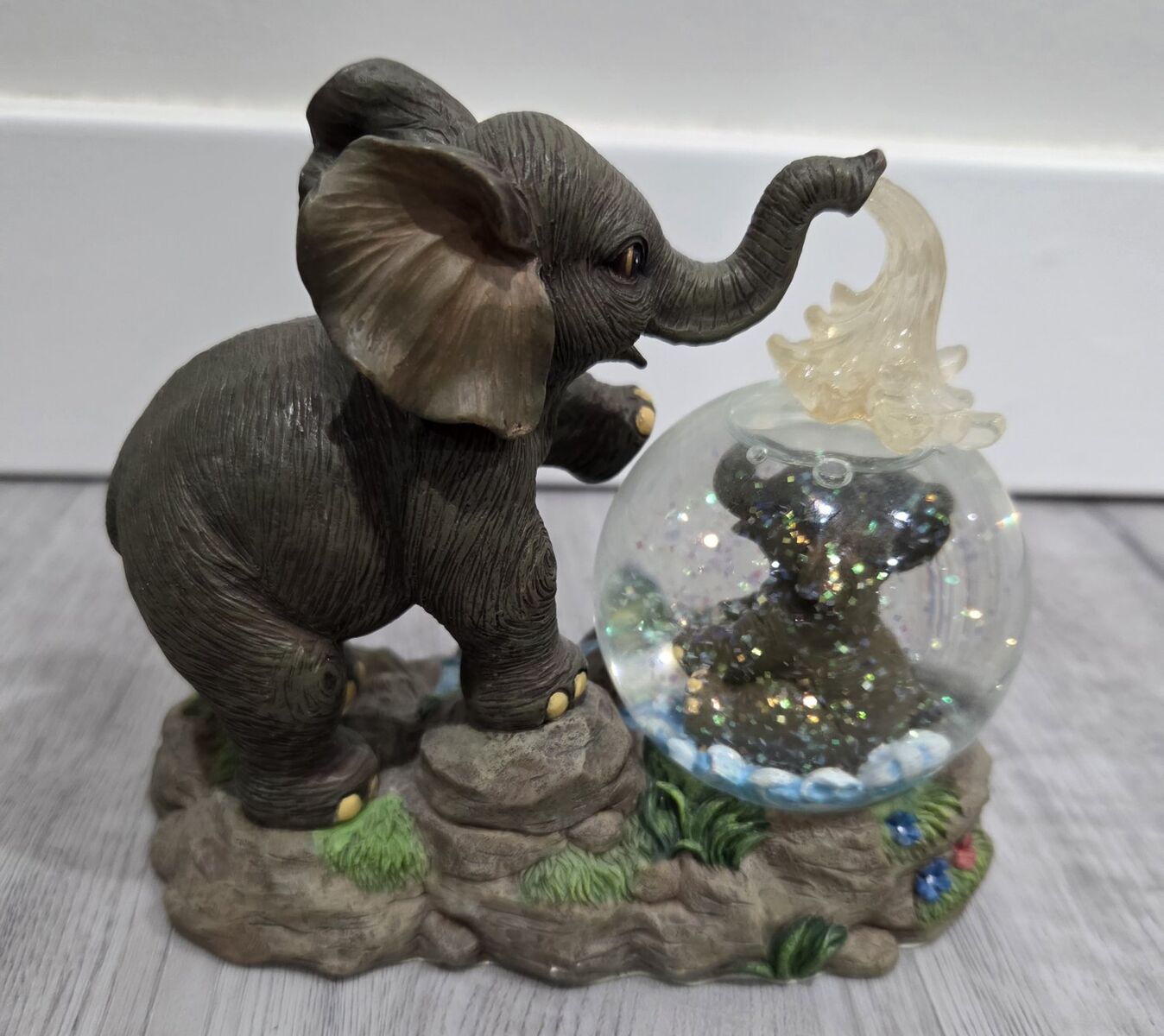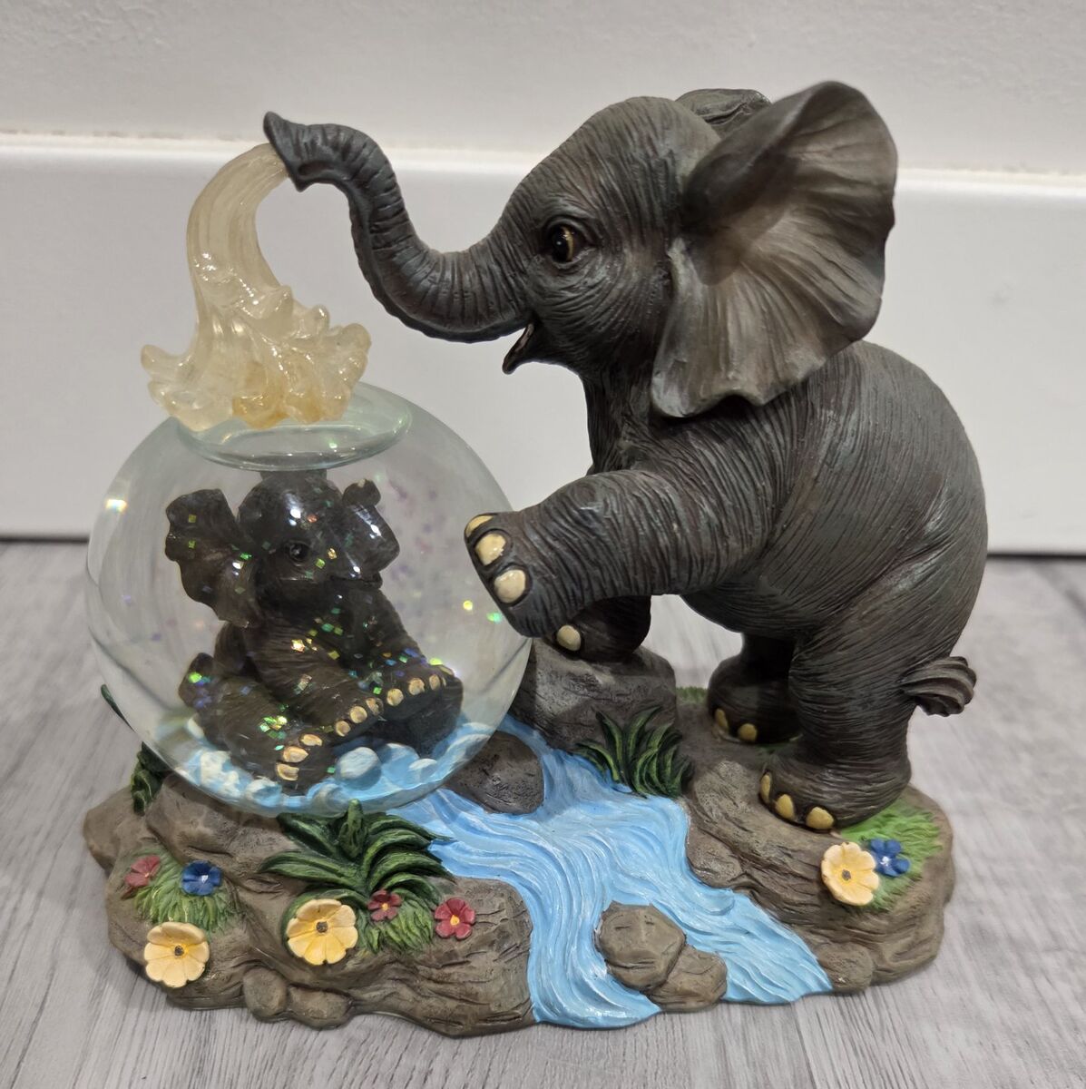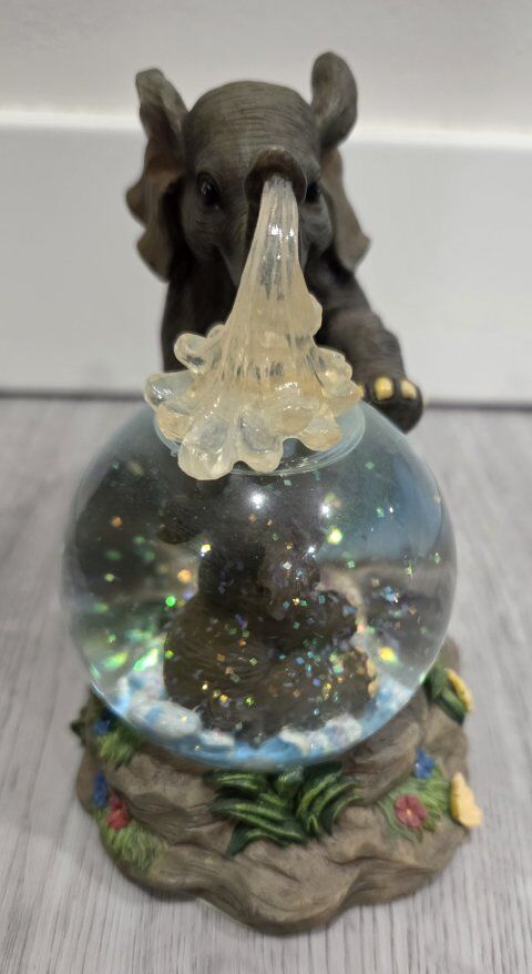 Venmo" Showered In Love" is part of Hamilton's Wonders In Water Collection from 1998. This particular snow globe depicts a heartwarming scene of a mother elephant spraying water on her calf, that evokes feelings of nurturing and playfulness.