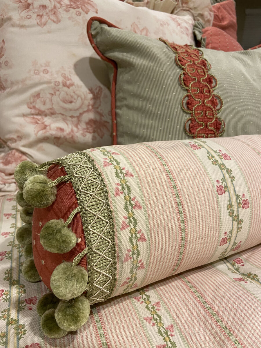 VenmoHIgh Quality Girls Twin Bedding set- This comes with thick twin size comforter (double sided high quality fabric). Two large square pillows (Darker pink ones in the back), one standard size pillow sham (White and pink Toile), one round decorative pillow, one rectangular decorative pillow and one small bolster pillow. All pieced have cute trim and are in excellent condition.