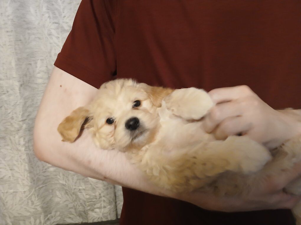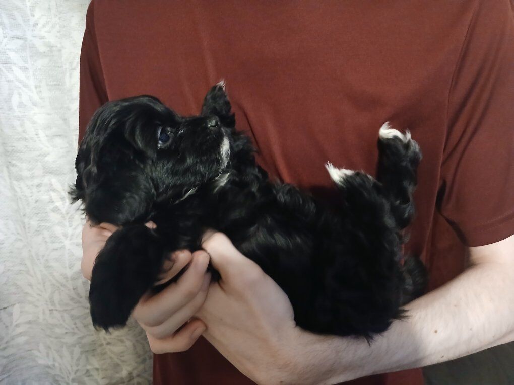 VenmoMalshi Goldendoodle puppies are a delightful mix of the Maltese and Shih Tzu breeds, known for their affectionate and playful nature. They are small, typically weighing between 3 to 7 kg, and standing at around 25–30 cm in height. These puppies are social, loving, and require close companionship throughout the day. They are also known for their low-shedding coat, which can come in various colors, including white, black, and apricot. Malshi Goldendoodle puppies are often sought after for their friendly and outgoing temperament, making them excellent family pets. They are also recognized for their potential as service dogs. One black female with white markings, two black males with white markings and one apricot male. They have had their first shots and passed their health checks. Mother (F1B Mini Goldendoodle) bred from multiple championship lines. No holds as they are turning eight weeks old tomorrow, and ready for their FUR-ever homes. Have had ASD kids will reduce price for ESAs or agreement to neuter at appropriate age. Serious interest only.