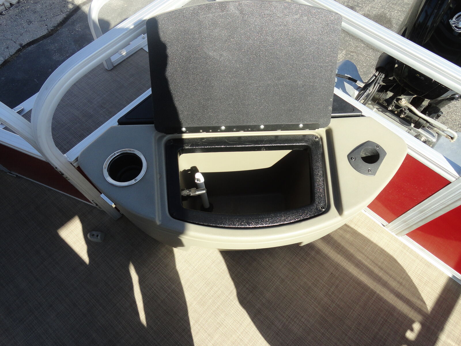 This fishing pontoon’s deck fits up to 10 people looking for a great day of casting lines. When it’s time for lunch, set up the removable table with drink holders near the comfortable L-shaped aft lounge. Your guests can also relax in the lounge seat in front of the driver’s console. This pontoon is fully decked out to let you make the most of your days fishing on the water.