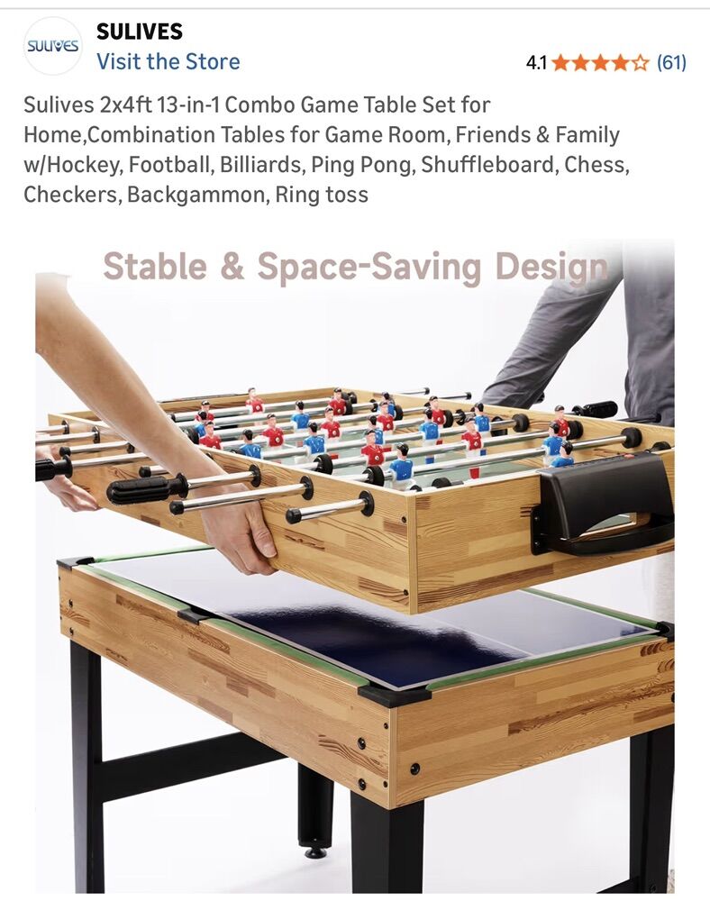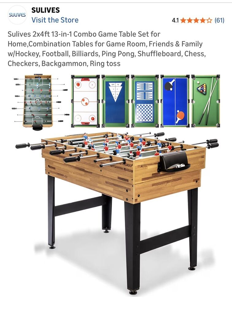 Sulives 2x4 ft 13-in-1 Combination Game Table. Perfect for a game room, basement, kids’ playroom, or family space.