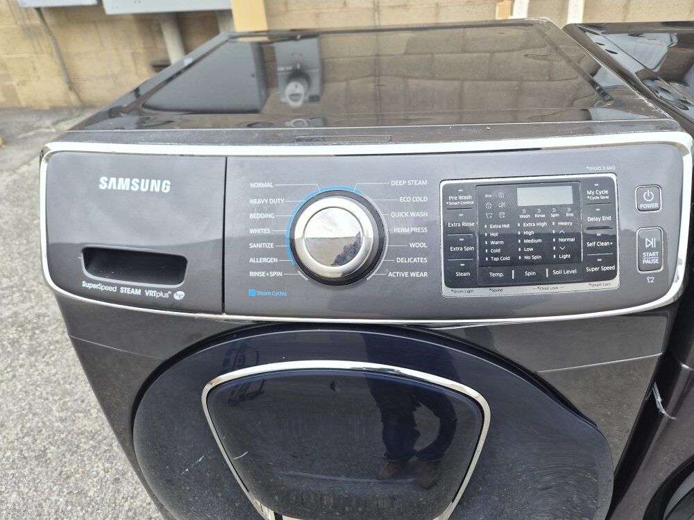 The washer and front-loading dryer can be used together or stacked. Heavy work and commercial quality. It has all the options, cycles and heat levels and it looks and works like new. It comes with warranty and delivery on the sidewalk available.