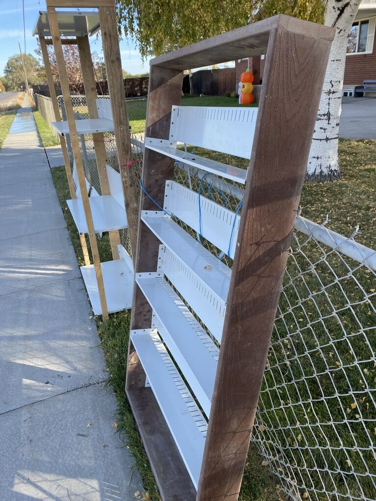 VenmoWhite powder coated steel shelves with 200 pound weight capacity per shelf. Shelf dimensions are 10 inches and 16 inches deep by 34 inches wide. Uprights are not included with shelves. These shelves would be perfect for garage, shop, utility trailer, food storage, storage units, etc.