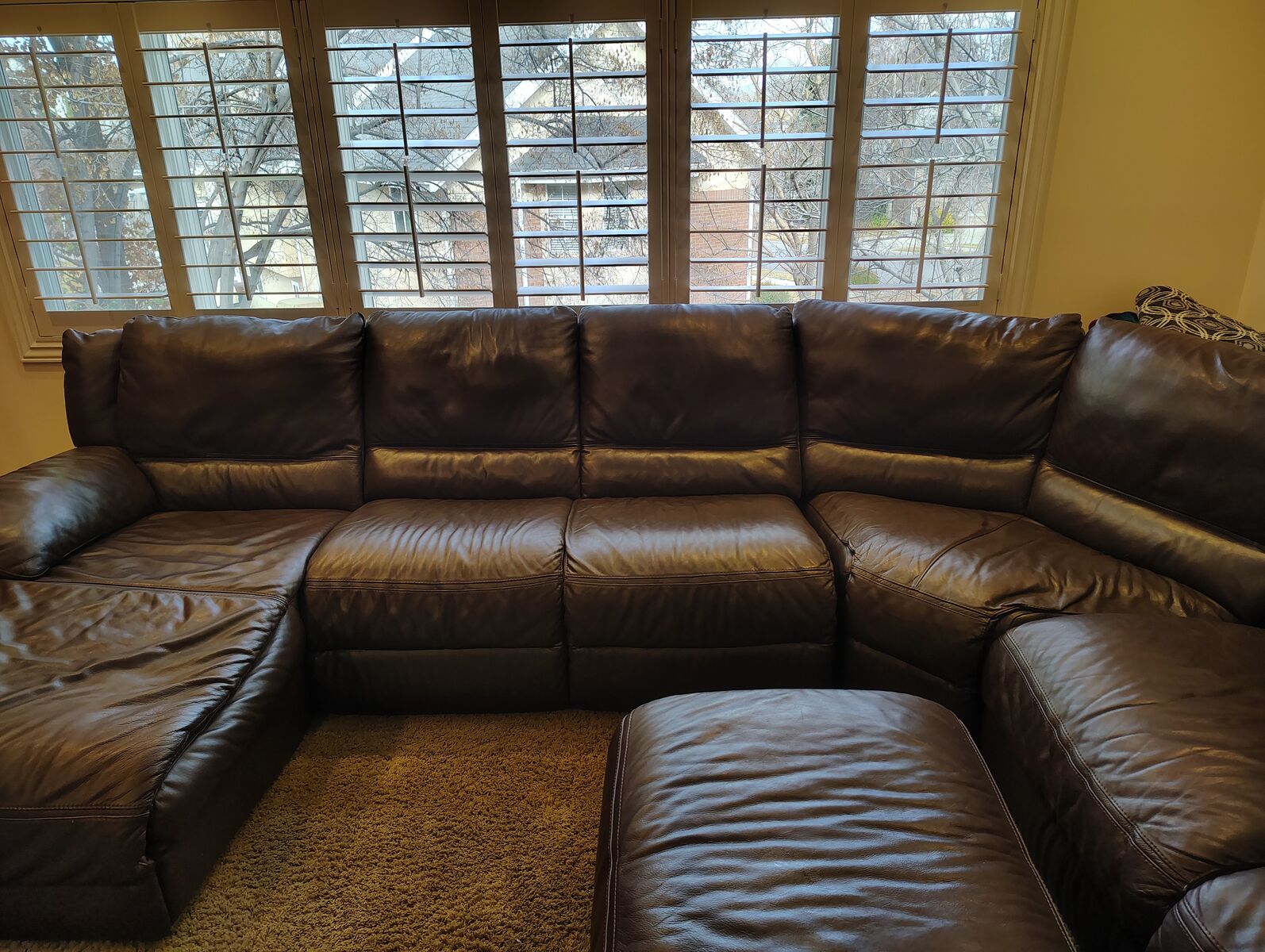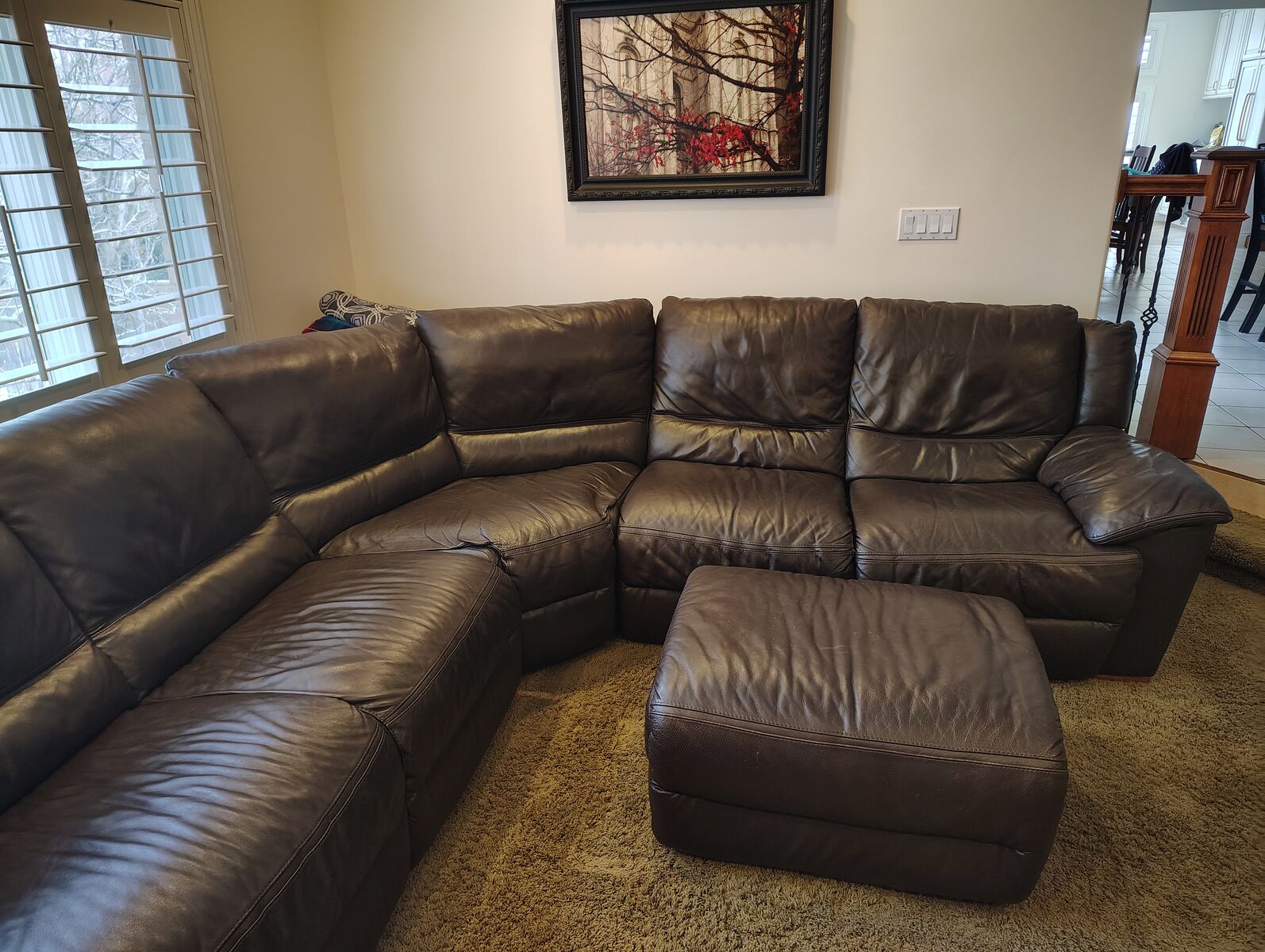 98" x 122" Natuzzi leather sectional/recliner including ottoman. No rips or blemishes.