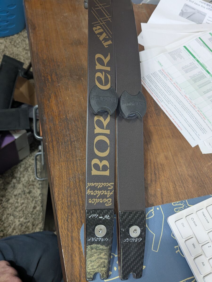 PayPalI have a set of Border ILF TXB long limbs rated 44# on a 25" riser. They come with limb covers. Border limbs are top of the line limbs and I found these felt and performed better than Winex limbs.
