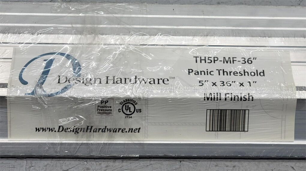 This auction features a Design Hardware Panic Threshold measuring 5 inches by 36 inches by 1 inch. Crafted from durable materials, this threshold showcases a sleek mill finish, providing a modern touch to any doorway. Ideal for commercial or residential applications, it ensures a secure and stable fit, enhancing the functionality and appearance of your entrances. The product is packaged and ready for installation.