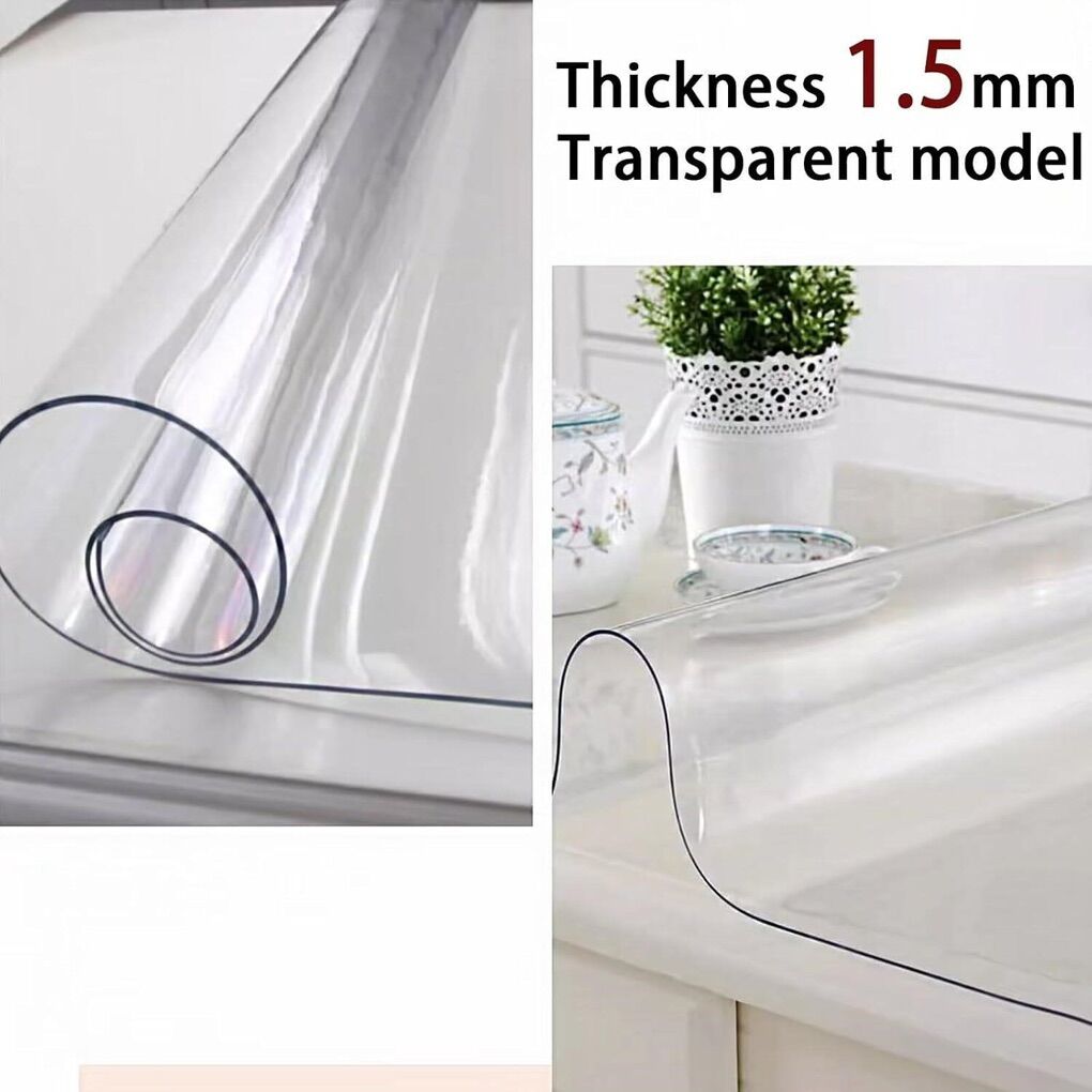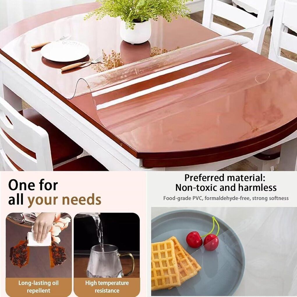 Versatile Use & Durable: The 1.5 mm thicken clear table covers protect your table, desk or tablecloth against scratches, scuffs, stains and spillage, Waterproof and Heat Resistant (maximum to 176 F), the non-slip surface keeps the protector securely in place, preventing it from sliding or shifting.