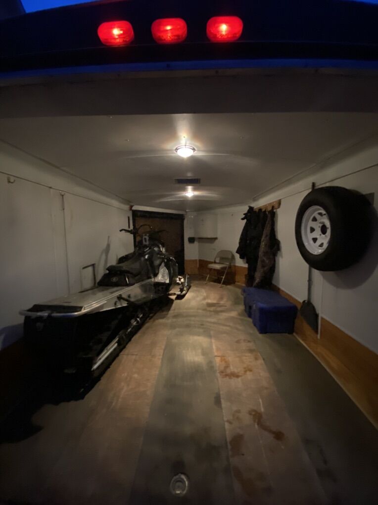 VenmoGreat trailer in great condition. 8x18. All lights work. Interior is in incredible condition. Fully insulated and has mats for snowmobile skis. Tons of hangers for tools or gear. Interior lights come with a small battery. Spare tire. Tires are in great shape. Pulls amazing. 6’1 interior. Can also throw in a couple 09 rmk snowmobiles in the deal for an extra $3500. $6800 obo for the trailer