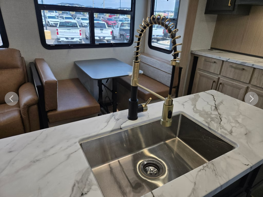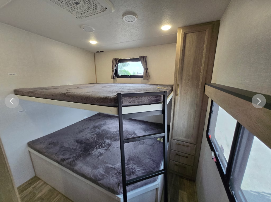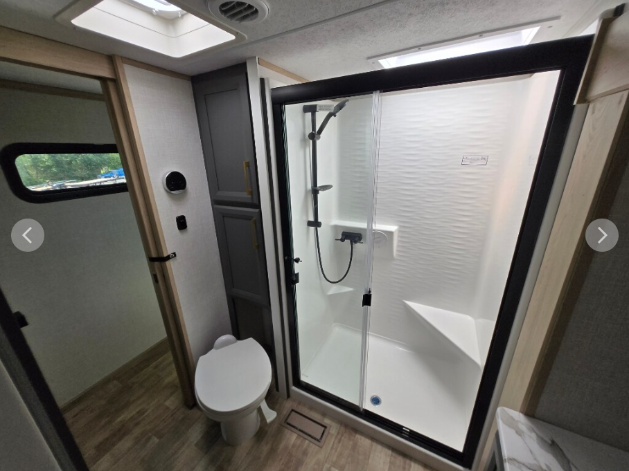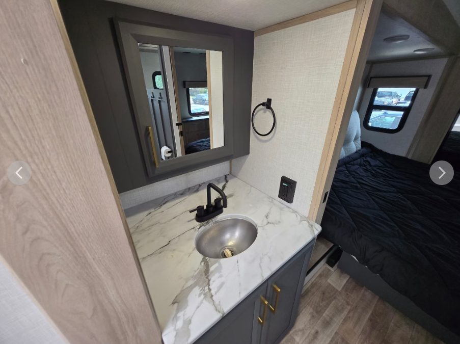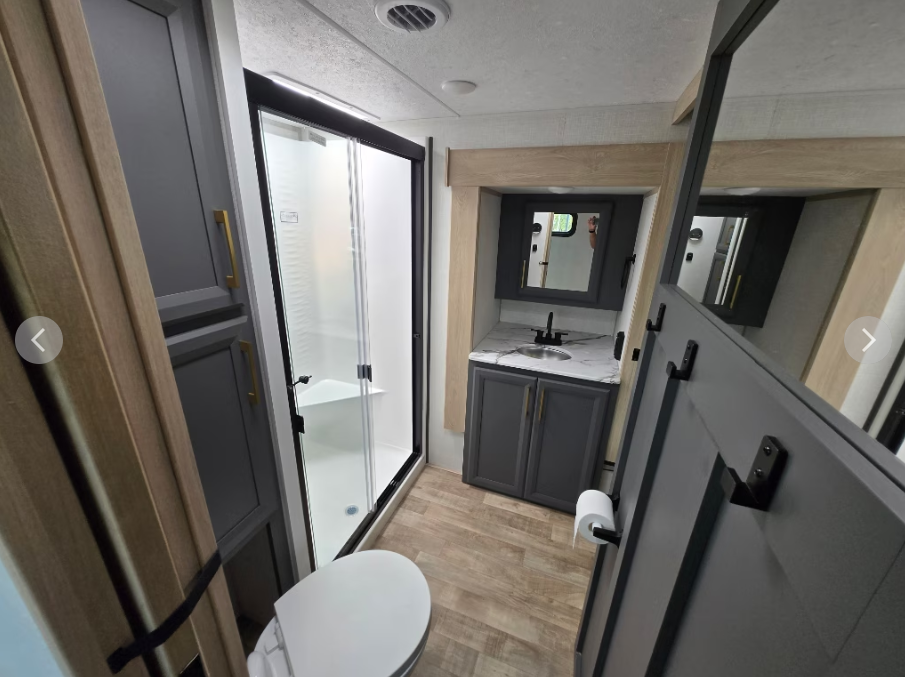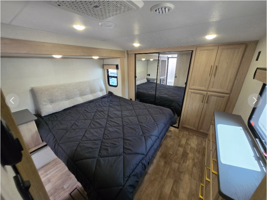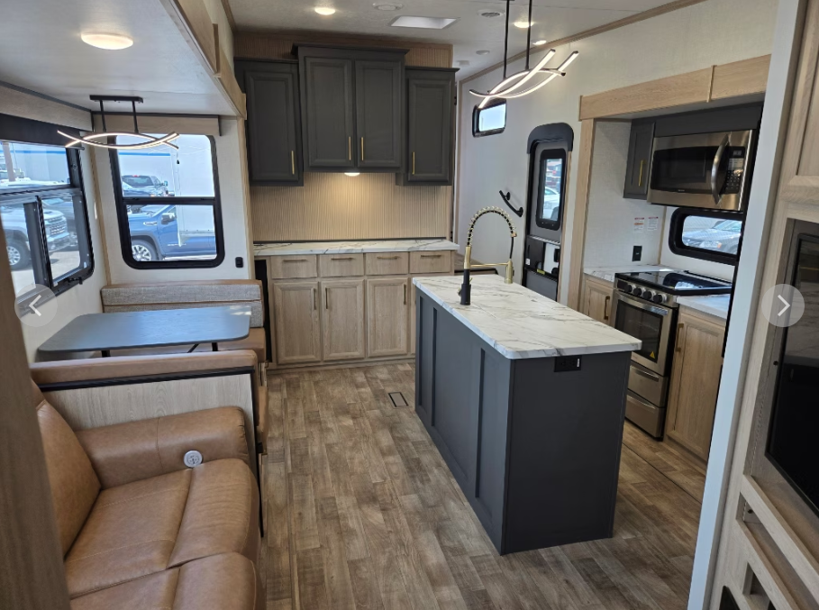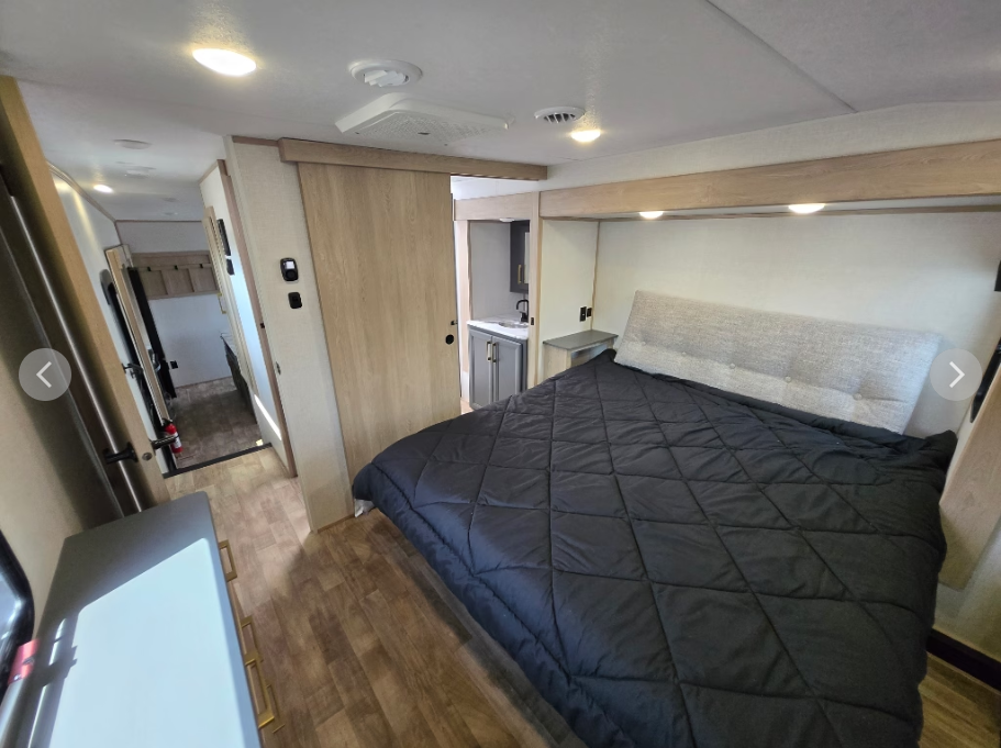 Exterior design combines modern aesthetics with durable construction, while the spacious floorplan includes versatile sleeping areas and smart storage solutions to accommodate gear and guests with ease.