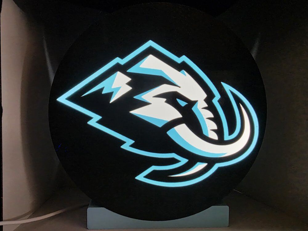 Light boxes. They have a usb powered light with on/off dimmer switch. They can stand on any flat surface or be hung from the wall. Utah Mammoth Puck 9 inches in diameter 1.5 inches deep Seahawks Superbowl Champs 9.25x7.5x1.5.