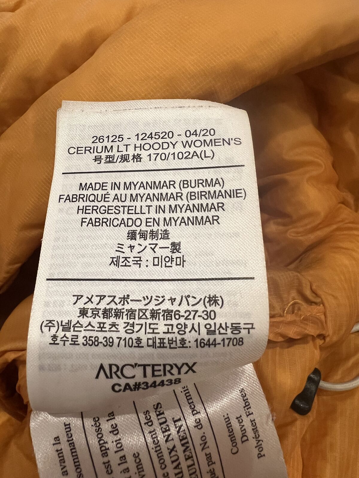 MARIGOLD Arc'teryx Cerium LT Hoody Women's jacket - size Large