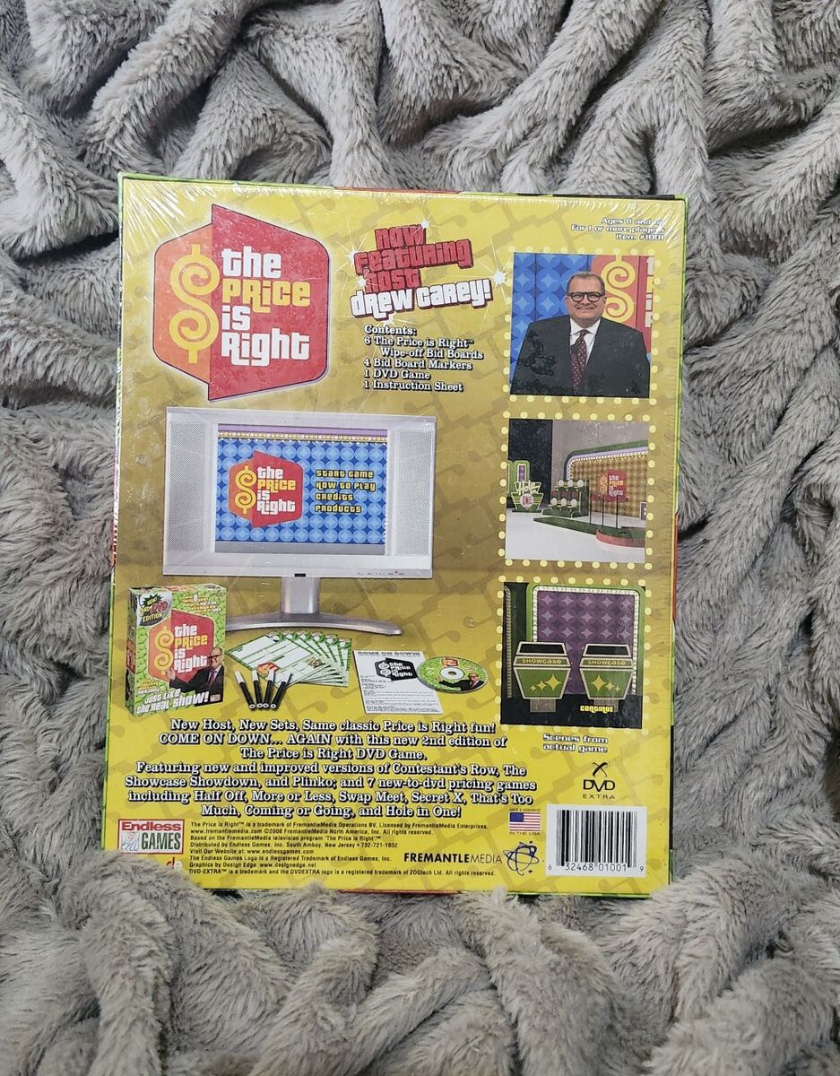 VenmoBrand new and still sealed The Price Is Right DVD Game (2nd DVD Edition) featuring Drew Carey. This is an interactive DVD game that lets you play along just like the real show; guessing prices, spinning the wheel, and playing classic pricing games as a group. Easy to learn and great for family game nights.