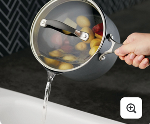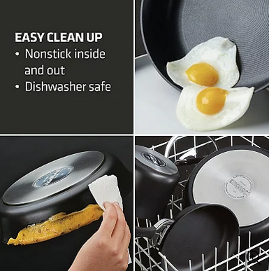 Impact Bonded base; ScratchDefense Non-Stick Interior; Compatible with All Cooktops, Including Induction; Ergonomic Silicone Grip Handles; Dishwasher Safe & Oven Safe up to 400°F