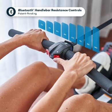 Unlike other connected rowers that rely on fixed resistance systems or screen-based controls, Row-s features a patent-pending Bluetooth® resistance controller built directly into the handlebars, allowing instant, precise adjustments without breaking form. That means smoother transitions, better pacing, and uninterrupted workouts—especially during intervals and performance-based training.