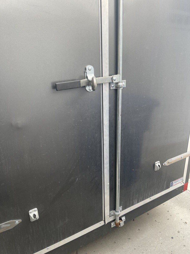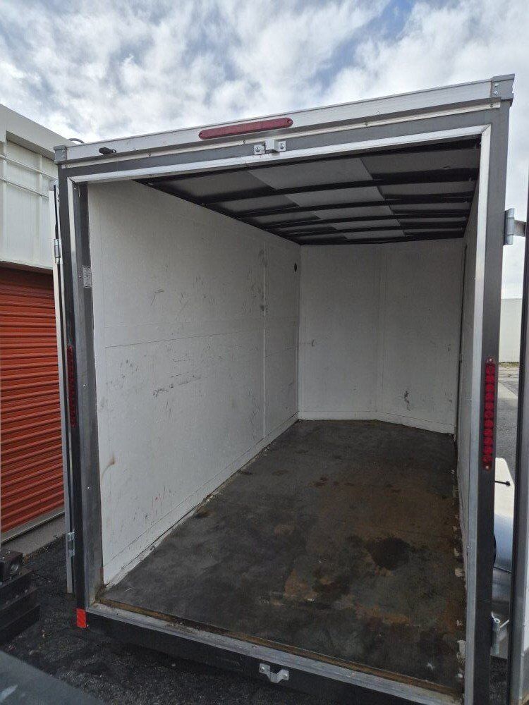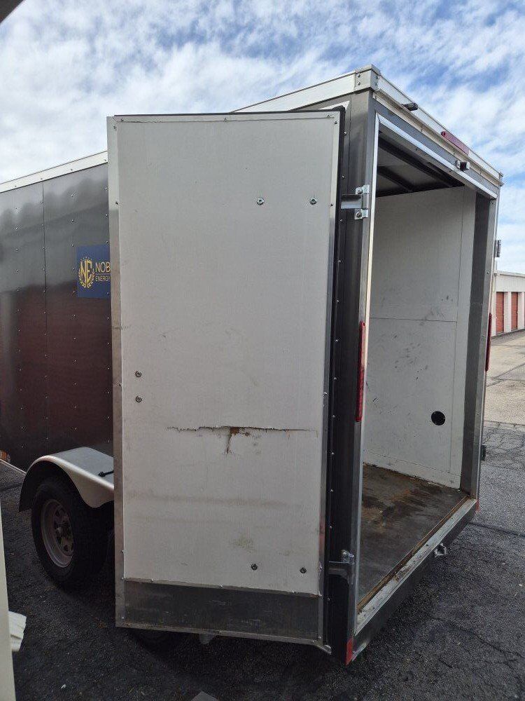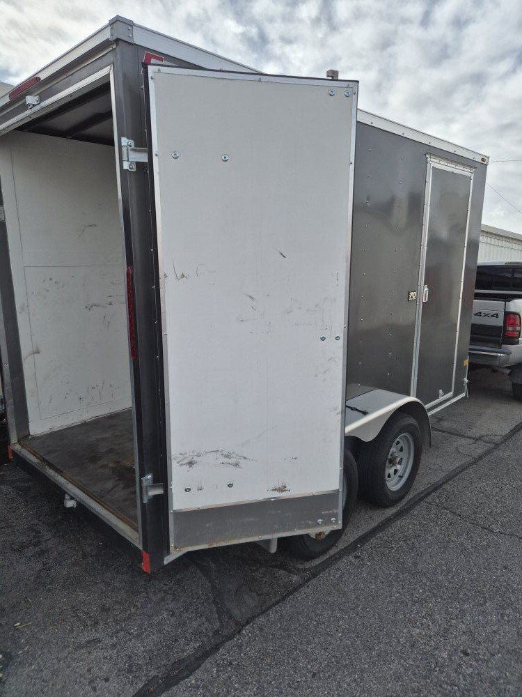 6' x 12' dual axle. I painted the interior white and put 1/4" metal plate on the flooring. never use it and just need it gone. paid 7500 for it but will drop it, Comes with lock, tow hitch/ball, and hitch lock.