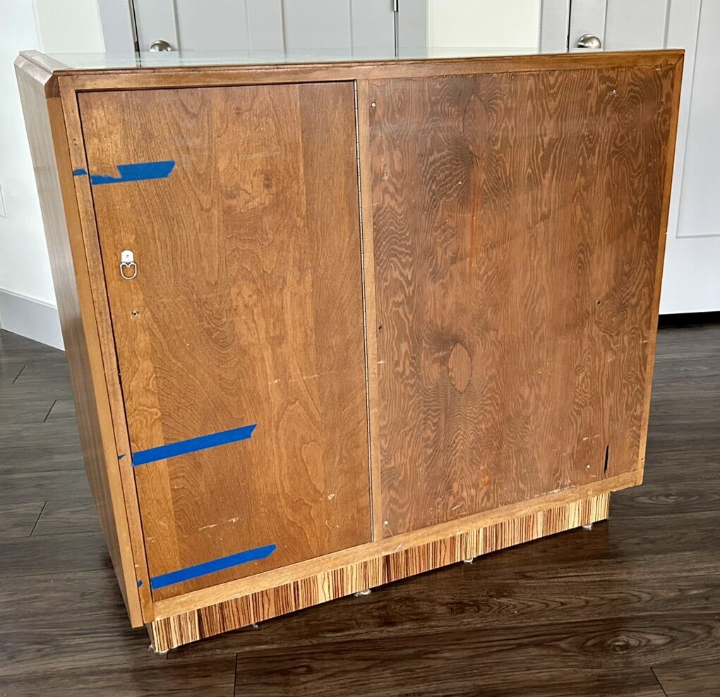 VenmoCurved glass display case / cabinet with 2 adjustable glass shelves. Walnut wood and trim Size 40” tall x 24” wide x 43” long One of a kind