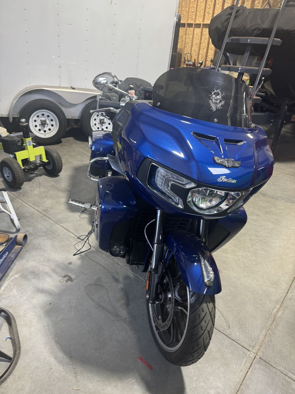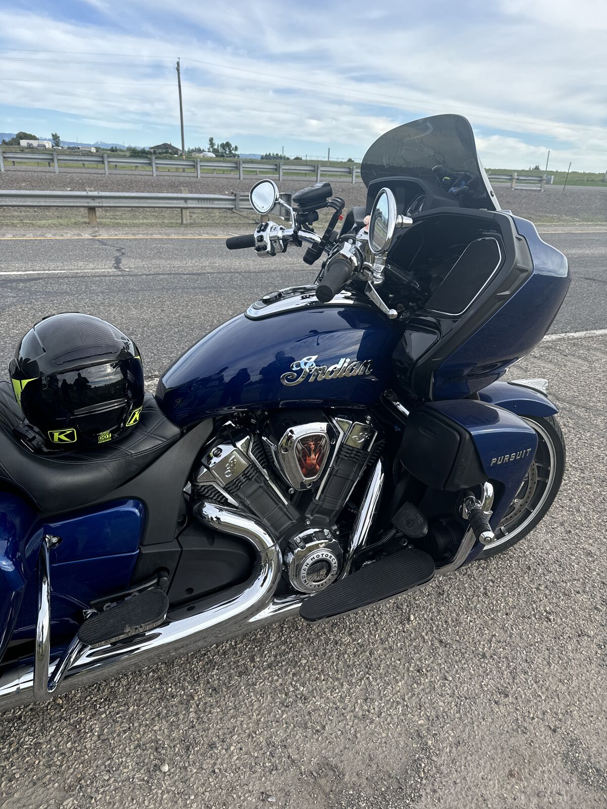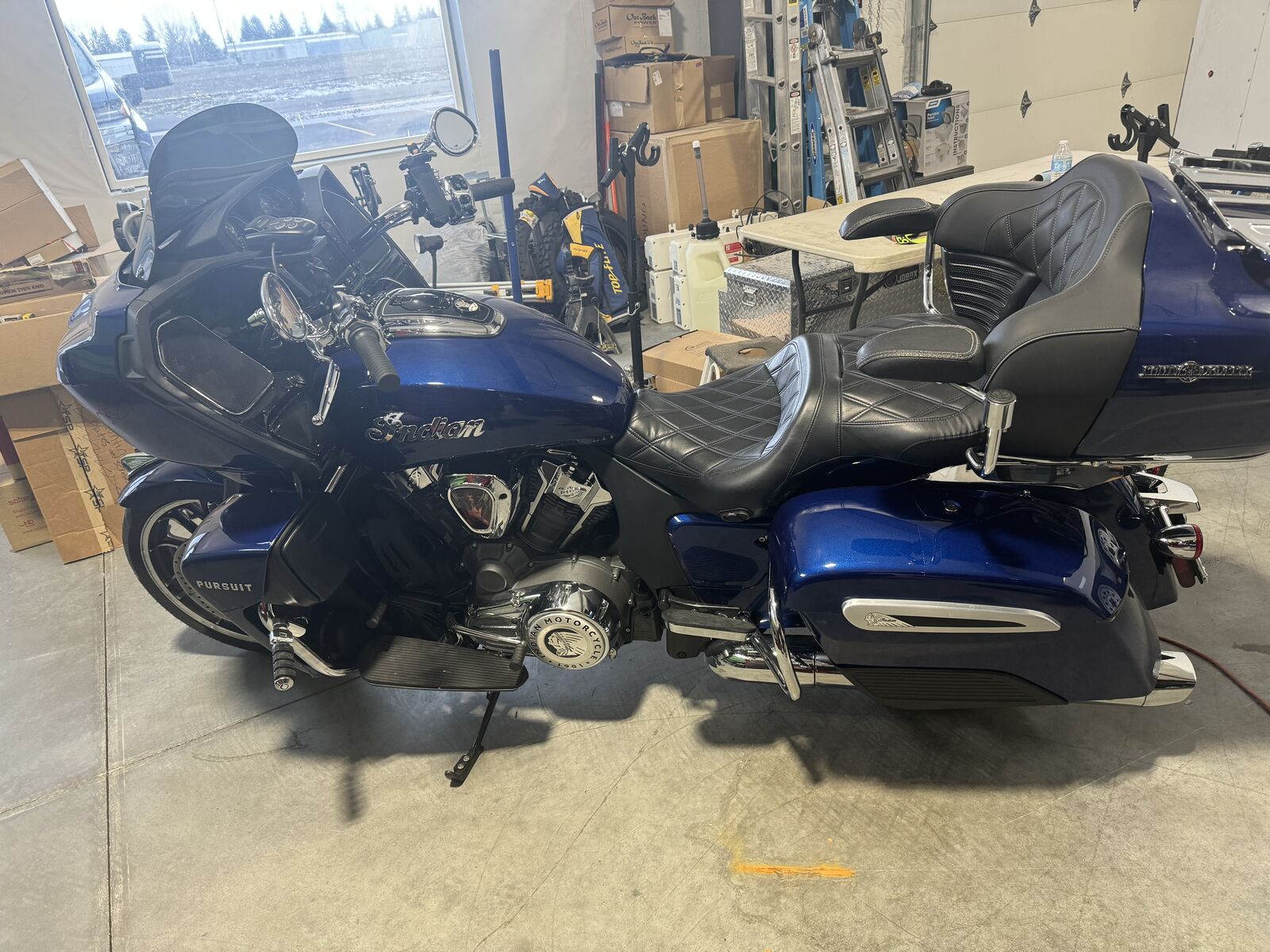 Miles closer to 8000 as still riding it. Had Seat rebuilt and widened for passenger with cool foam inside very comfortable, Stage 2 Indian Pipes and computer reprogrammed at Lloyds so more responsive. Just put new Dunlop tires on front and rear. Has clear bra on entire front end and darker windshield. Have originals as well of windshield and pipes. Great bike just looking to upgrade later this year. Also put a hidden hitch on but haven’t towed anything I bought a hitch rack in case I ever wanted more room. Haven’t used it yet and include in the sale as well. Features may include: THE POWER TO ROAM Inspired by our trailblazing founders, we continue to innovate what’s next in American Motorcycling. The Indian Pursuit blends distinctive American style, next generation performance, and rider-centric technology in a single package to help riders break free from the grind. NEW POWERPLUS 112 ENGINE The new PowerPlus 112 cu-in engine makes 126 hp and 133 ft-lbs of torque straight from the factory. That same engine won the 2024 MotoAmerica King of the Baggers Championship. RIDER CENTRIC TECHNOLOGY The PowerPlus 112 comes standard with breakthrough advancements on American V-Twin Touring Bikes including Blind Spot Warning, Tailgate Warning, Rear Collision Warning, Bike Hold Control, an electronic combined brake system, and Smart Lean with lean sensitive ABS braking and traction control. Combined, this advanced set of features improves awareness on every ride. ROCK SOLID STABILITY Experience unparalleled comfort on the road with the chassis-mounted fairing, electronically adjustable windshield, and heated premium seats. Whether you’re the rider or passenger, these features provide optimal wind protection and customizable warmth, enhancing your touring experience. With a chassis-mounted fairing, optional electronically adjustable Fox® rear suspension preload, inverted front forks, and a cast-aluminum frame, you have ultimate control. LONG-HAUL STORAGE 36+ gallons of weatherproof, remote-locking storage or take off the quick-release trunk to drop weight and give yourself a whole new profile. Enjoy even more storage with additional compartments seamlessly integrated into the lower fairings.