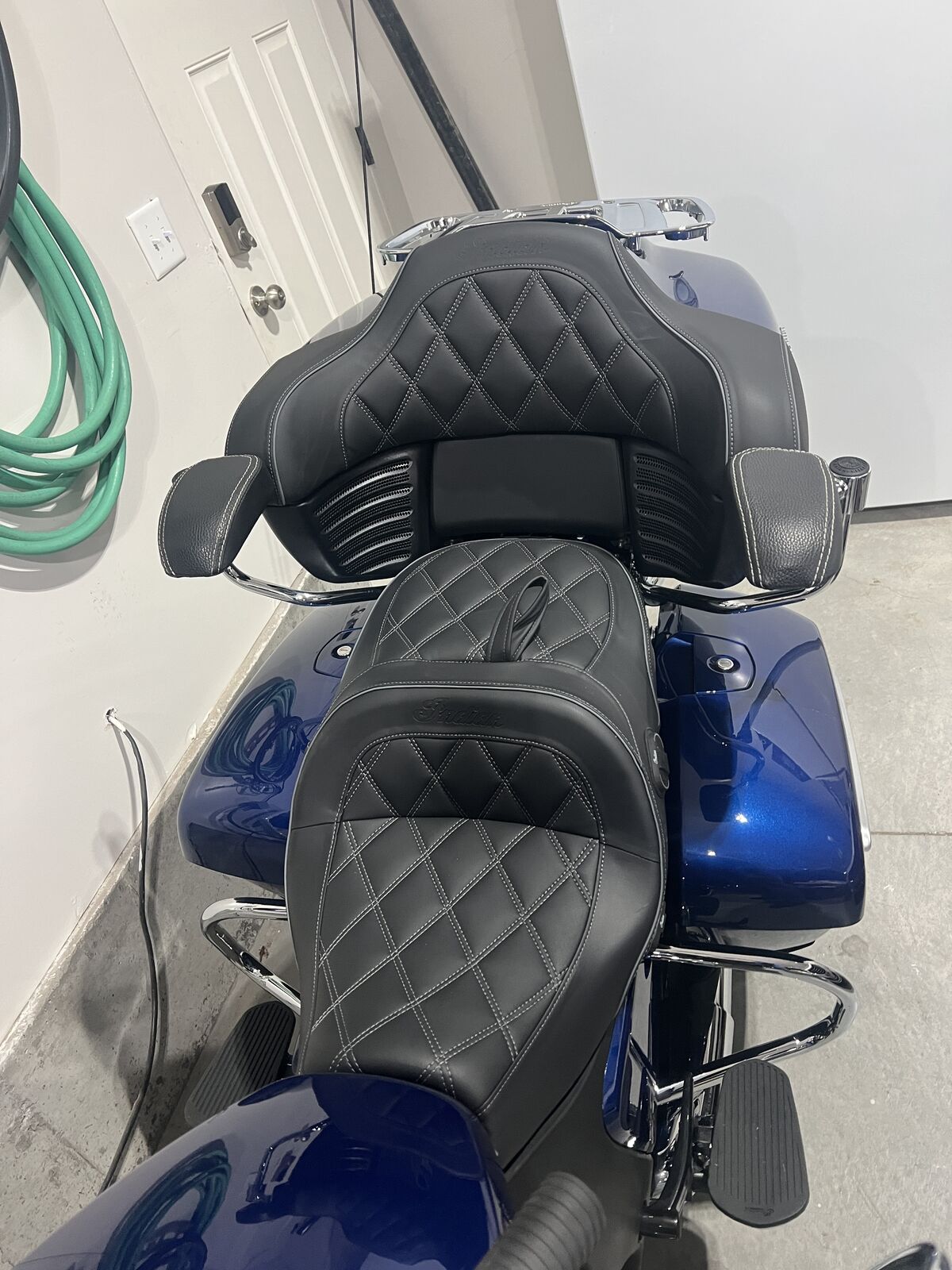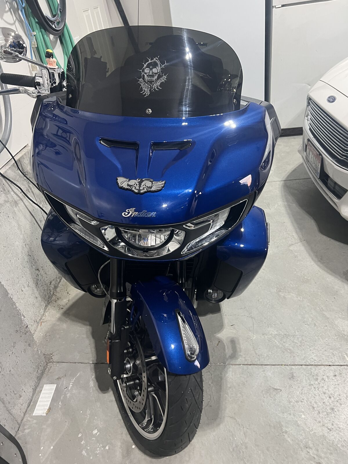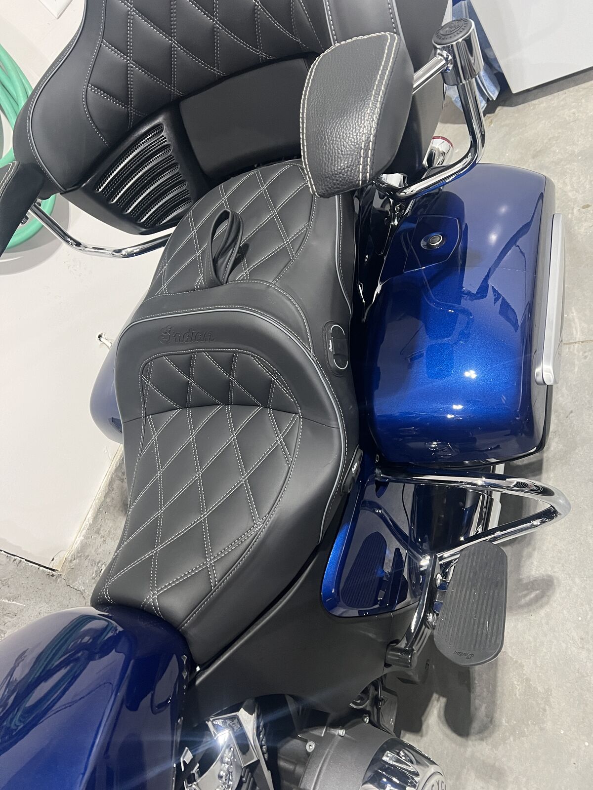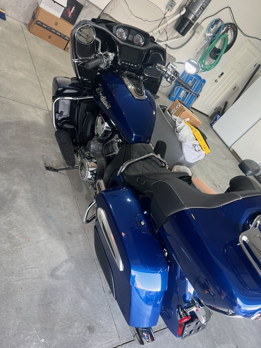 Miles closer to 8000 as still riding it. Had Seat rebuilt and widened for passenger with cool foam inside very comfortable, Stage 2 Indian Pipes and computer reprogrammed at Lloyds so more responsive. Just put new Dunlop tires on front and rear. Has clear bra on entire front end and darker windshield. Have originals as well of windshield and pipes. Great bike just looking to upgrade later this year. Also put a hidden hitch on but haven’t towed anything I bought a hitch rack in case I ever wanted more room. Haven’t used it yet and include in the sale as well. Features may include: THE POWER TO ROAM Inspired by our trailblazing founders, we continue to innovate what’s next in American Motorcycling. The Indian Pursuit blends distinctive American style, next generation performance, and rider-centric technology in a single package to help riders break free from the grind. NEW POWERPLUS 112 ENGINE The new PowerPlus 112 cu-in engine makes 126 hp and 133 ft-lbs of torque straight from the factory. That same engine won the 2024 MotoAmerica King of the Baggers Championship. RIDER CENTRIC TECHNOLOGY The PowerPlus 112 comes standard with breakthrough advancements on American V-Twin Touring Bikes including Blind Spot Warning, Tailgate Warning, Rear Collision Warning, Bike Hold Control, an electronic combined brake system, and Smart Lean with lean sensitive ABS braking and traction control. Combined, this advanced set of features improves awareness on every ride. ROCK SOLID STABILITY Experience unparalleled comfort on the road with the chassis-mounted fairing, electronically adjustable windshield, and heated premium seats. Whether you’re the rider or passenger, these features provide optimal wind protection and customizable warmth, enhancing your touring experience. With a chassis-mounted fairing, optional electronically adjustable Fox® rear suspension preload, inverted front forks, and a cast-aluminum frame, you have ultimate control. LONG-HAUL STORAGE 36+ gallons of weatherproof, remote-locking storage or take off the quick-release trunk to drop weight and give yourself a whole new profile. Enjoy even more storage with additional compartments seamlessly integrated into the lower fairings.