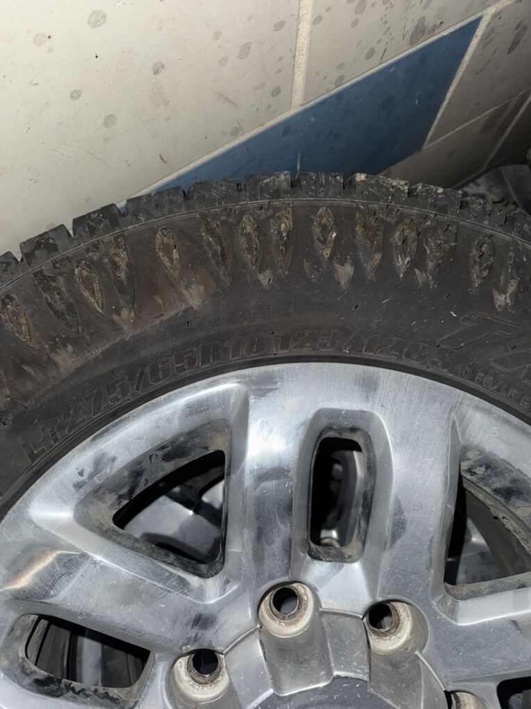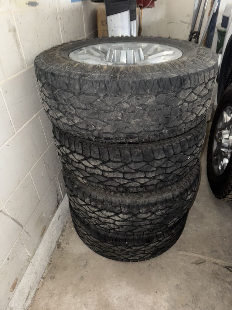 Rims are 18x8, with 275/65R18 tires Tires have a lot of light left in them. Rims are in good condition, comes with lug nuts