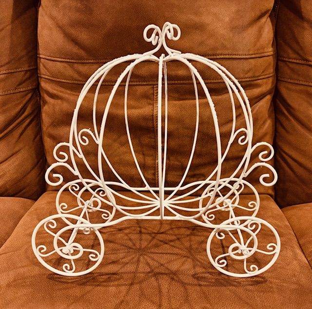 VenmoCinderella Carriage Decorations, 12 in all, , irridescent sparkles, wheels turn, great for weddings and events, (candles not included) Greenery and flowers have been removed but are included with purchase. $10 each ( $120 for all)