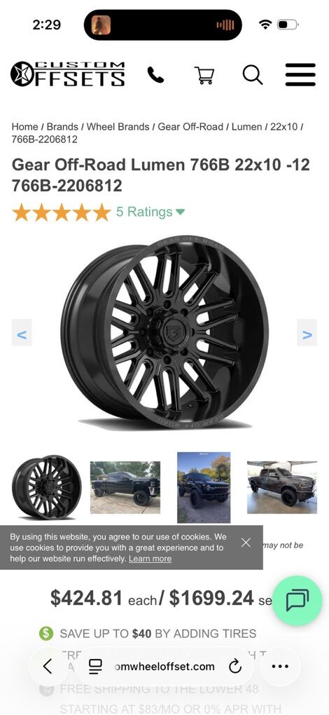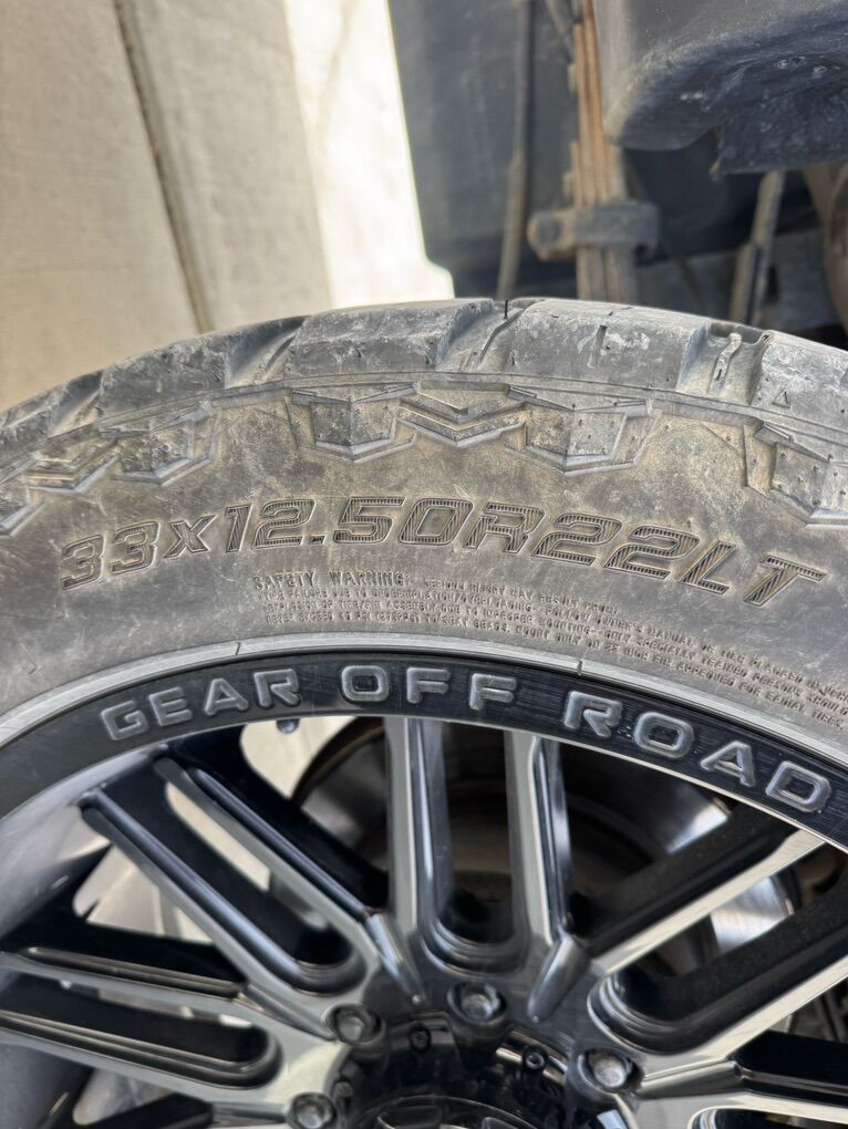 Venmo22x10 rims, with 33x12.50 R22 tires Rims don’t have curb rash or any scuffs, all of them have center caps Tires are in great shape, less that 5,000 miles