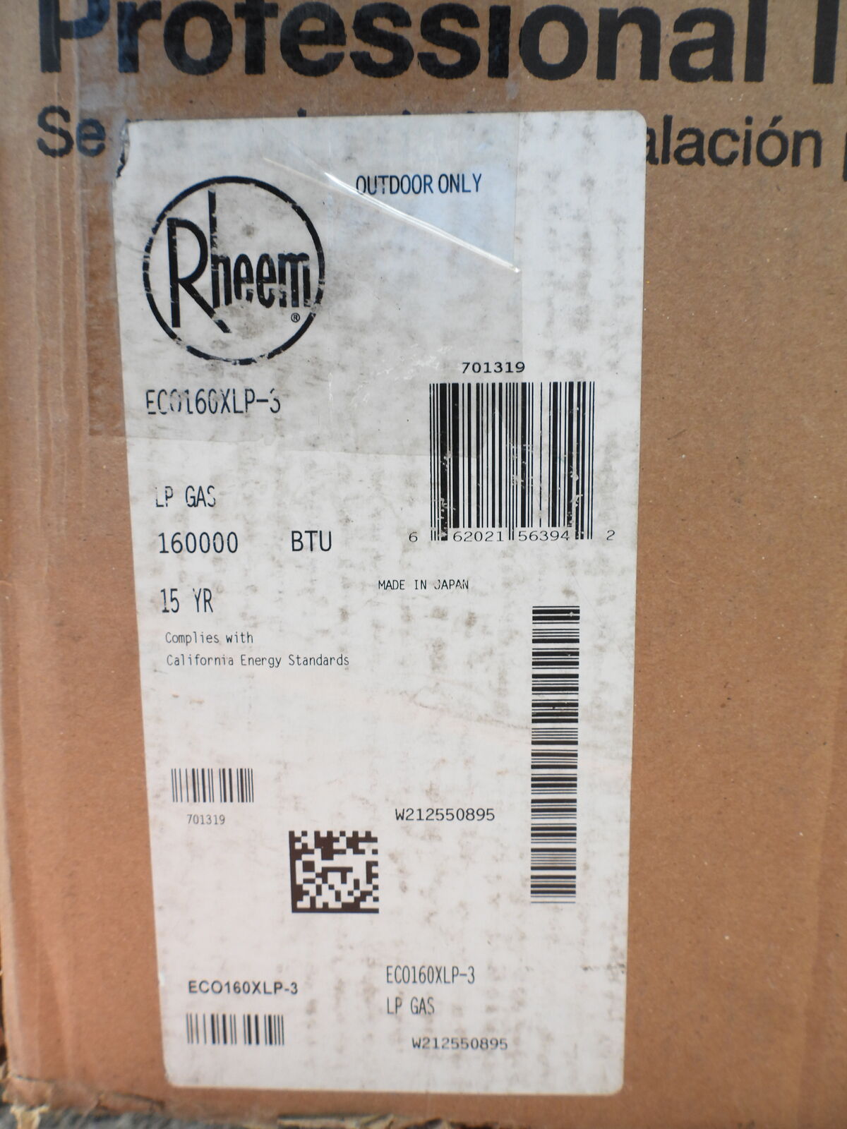 Here is a new Rheem ECO160XLP-3 Performance Plus 7.0 GPM Non-Condensing Outdoor Liquid Propane Tankless Water Heater.