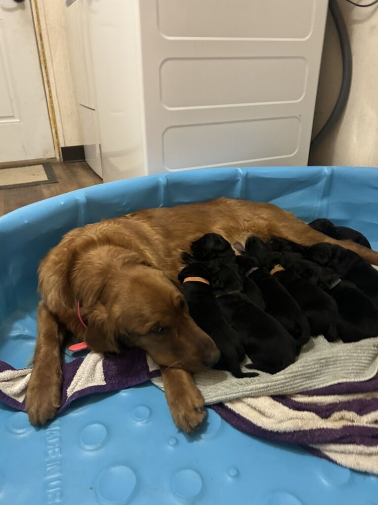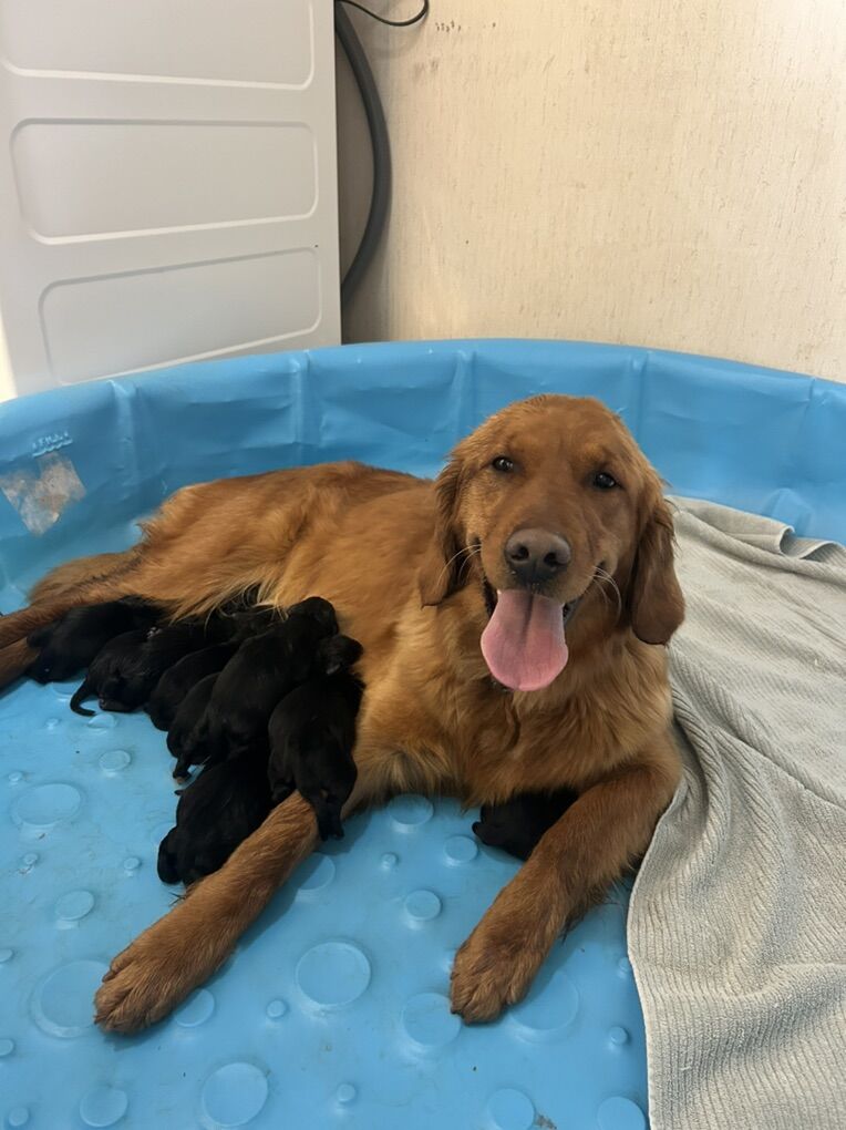 Mom is a golden retriever and dad is a Labrador. (pics of both parents included in the post)