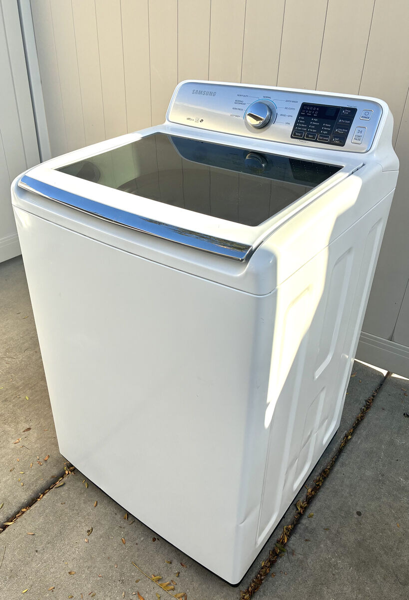 VenmoSAMSUNG Top Load washing machine, excellent condition. Heavy-duty, High-efficiency, Capacity: 4.5 cu. ft. 9 wash cycles Normal, Heavy Duty, Bedding/Waterproof, Quick Wash, Delicates. 5 temperature settings. Active WaterJet for easy pretreating, Deep Fill option for larger loads, Self Clean cycle, soft-close glass lid. Stainless Steel Basket. Quiet operation. Includes water hoses. DELIVERY and Installation available. Dimensions: 27" W x 44" H x 29" D Text or call, Satisfaction guaranteed.