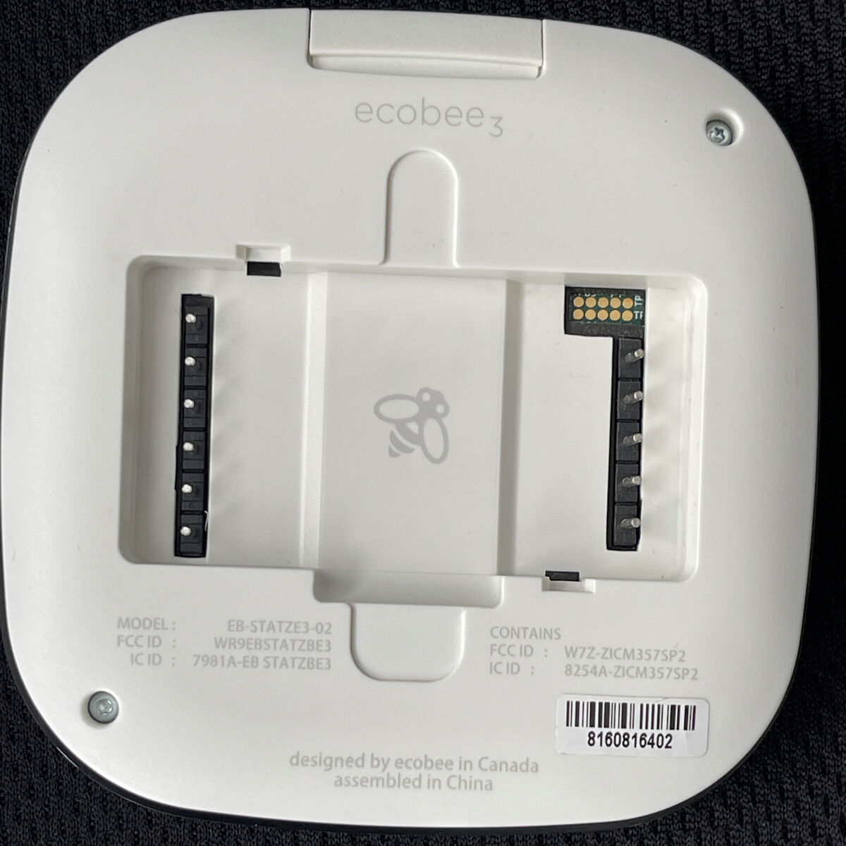 Includes: • ecobee3 thermostat • Backplate • Mounting trim plate (covers old wall marks) • Wiring terminal base