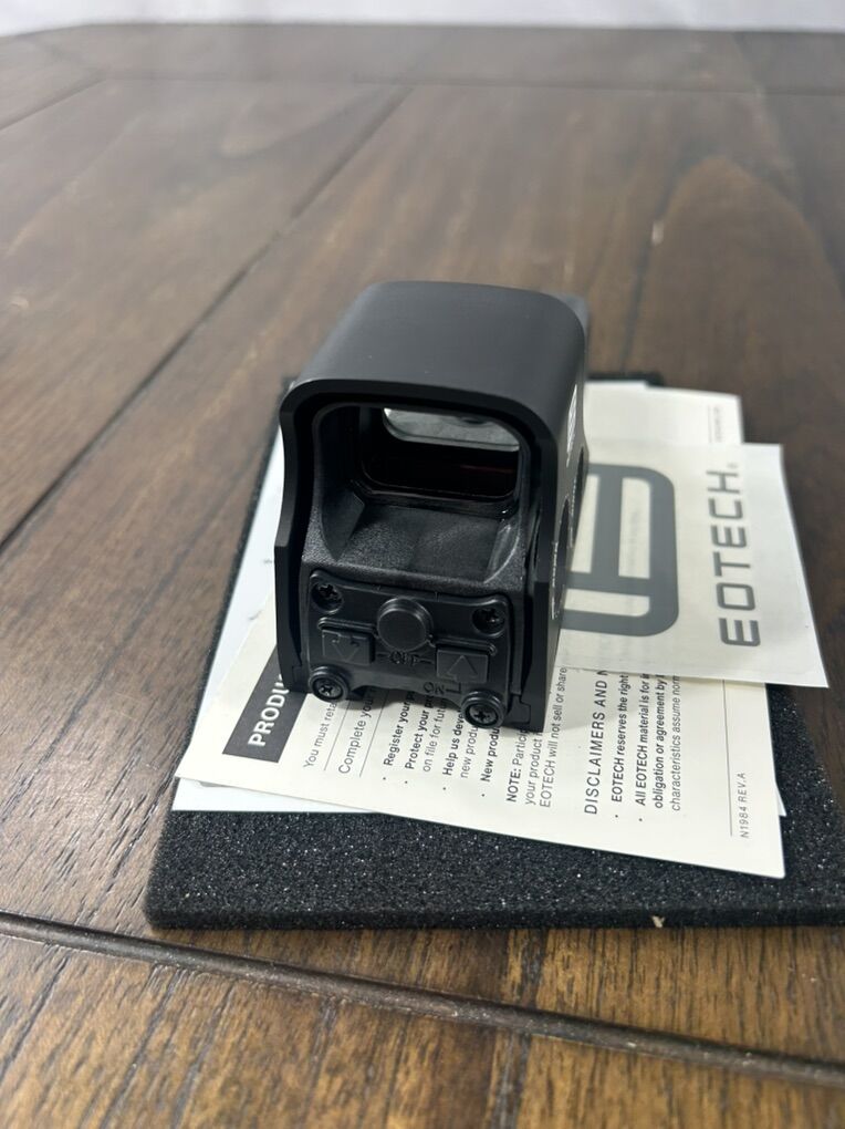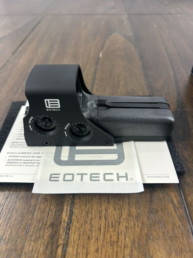 Brand new EO Tech holographic weapon sight in Black. New in box Never mounted Includes original packaging, paperwork and battery MSRP $545 Perfect for AR platform or defensive setup. Extremely durable and battle proven optic. Local face-to-face only. No trades. Cash preferred. Message if interested Will not accept low ball offers!