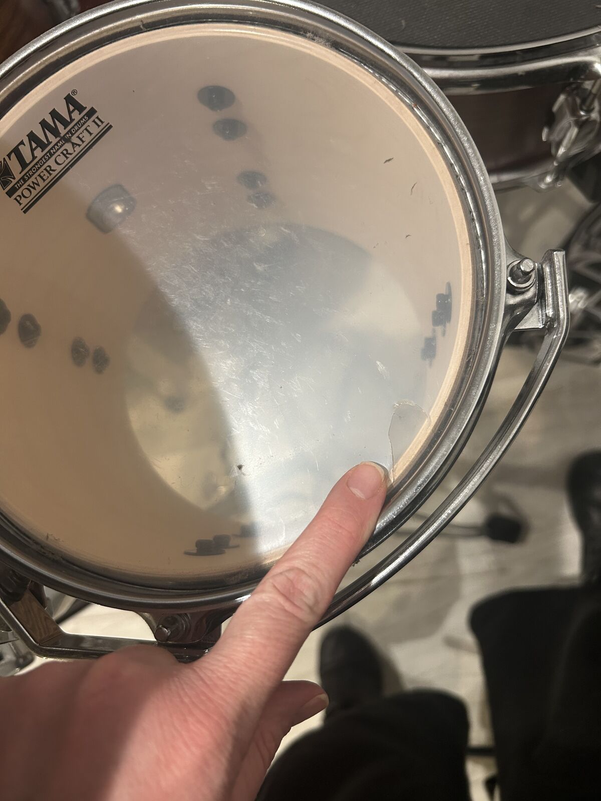 NOTE: Smallest tom needs a top head replacement (pictured)