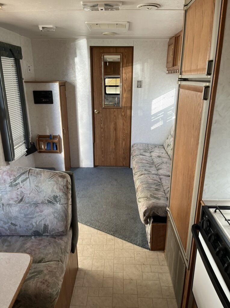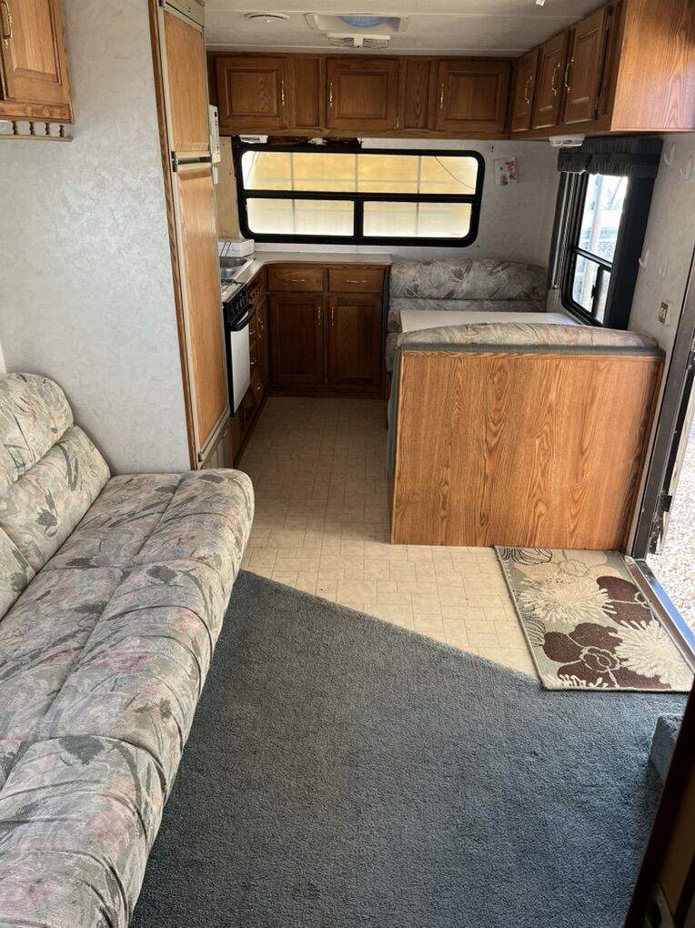 1997 KITM Sportsmaster 28’ Travel Trailer is ready for a new owner. This camp trailer has been great for my family. We are outgrowing it. It is in good shape for the year. Sleeps 6, no slide out but living area is roomy. Everything works on it, Furnace, I just replaced the fan wheel so it is quieter. A/C worked last time I used it. Water heater works if you light it by hand and microwave works as well. Tires are in decent shape, will need some new batteries. It has had some water damage but only affected the wood on one side of the front window. Asking $5000 OBO. Let me know if interested. Trent 435-469-2376